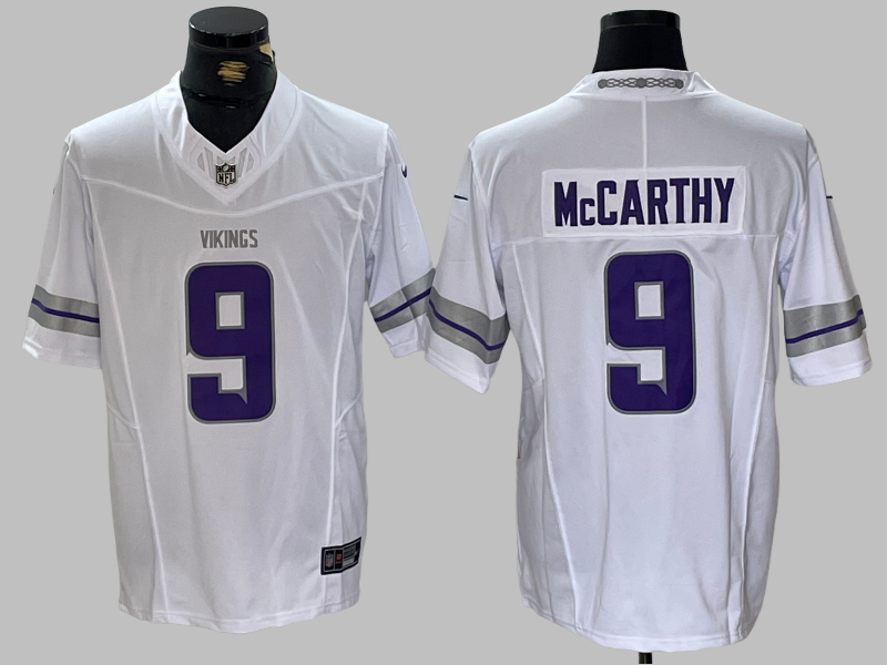 Men's Minnesota Vikings #9 J.J. McCarthy Stitched Limited NFL Jersey White