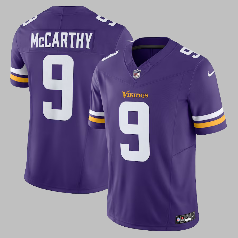 Men's Minnesota Vikings #9 J.J. McCarthy Stitched Limited NFL Jersey Purple