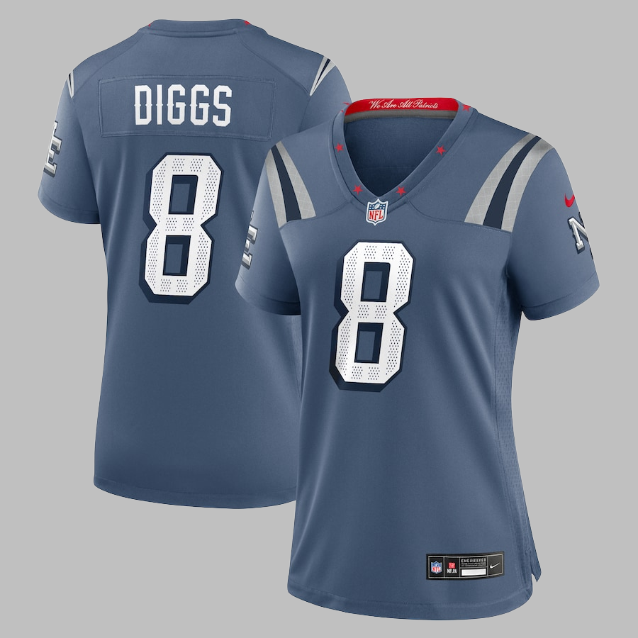 Women's New England Patriots #8 Stefon Diggs All Stitched NFL Storm Blue 2025 Rivalries Collection Jersey