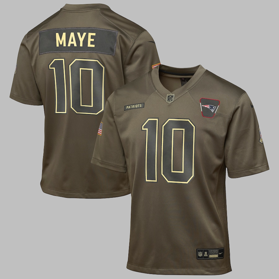 Youth New England Patriots #10 Drake Maye All Stitched NFL Olive 2025 Salute to Service Jersey