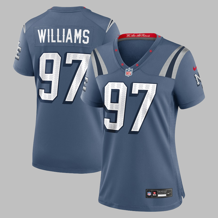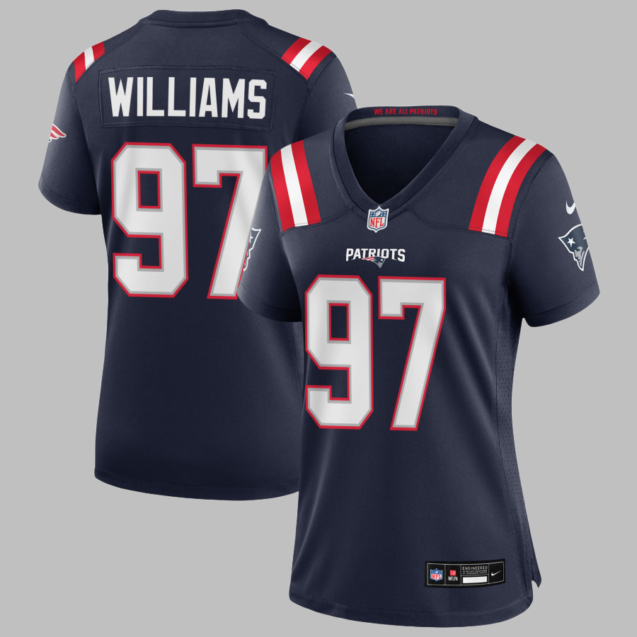 Women's New England Patriots #97 Milton Williams Navy All Stitched NFL Jersey