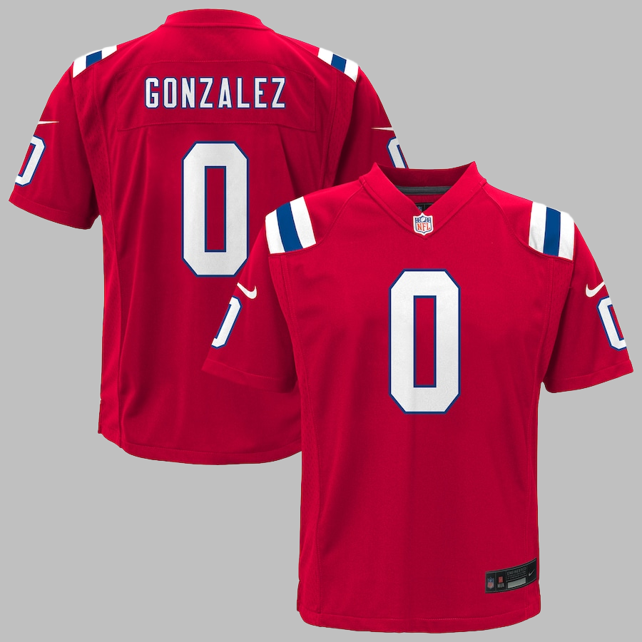 Youth New England Patriots #0 Christian Gonzalez All Stitched NFL Red Jersey
