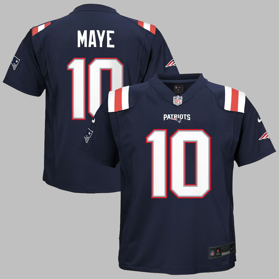 Youth New England Patriots #10 Drake Maye All Stitched NFL Navy Jersey