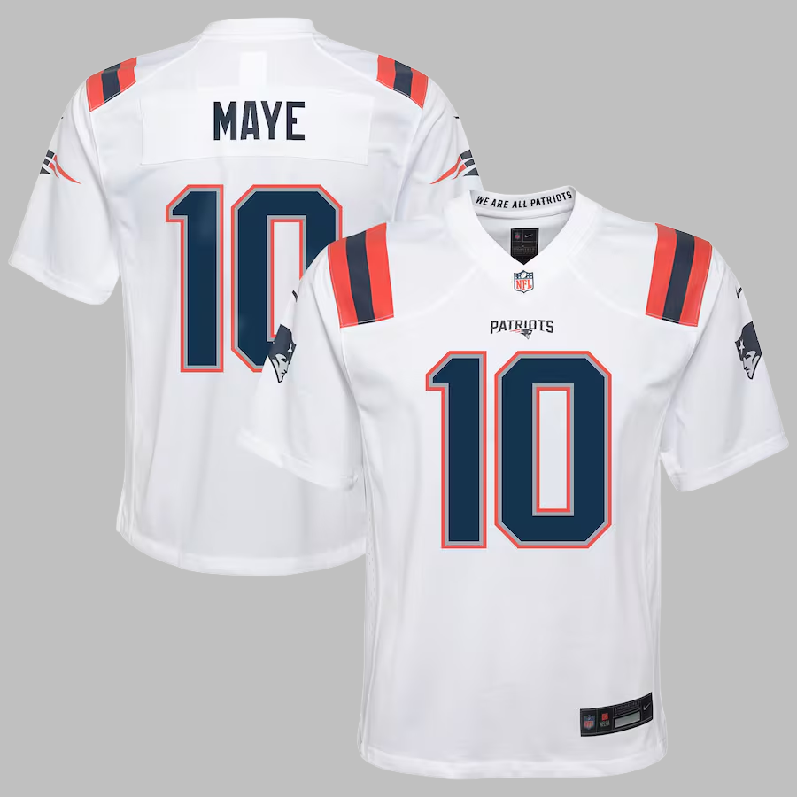 Youth New England Patriots #10 Drake Maye All Stitched NFL White Jersey
