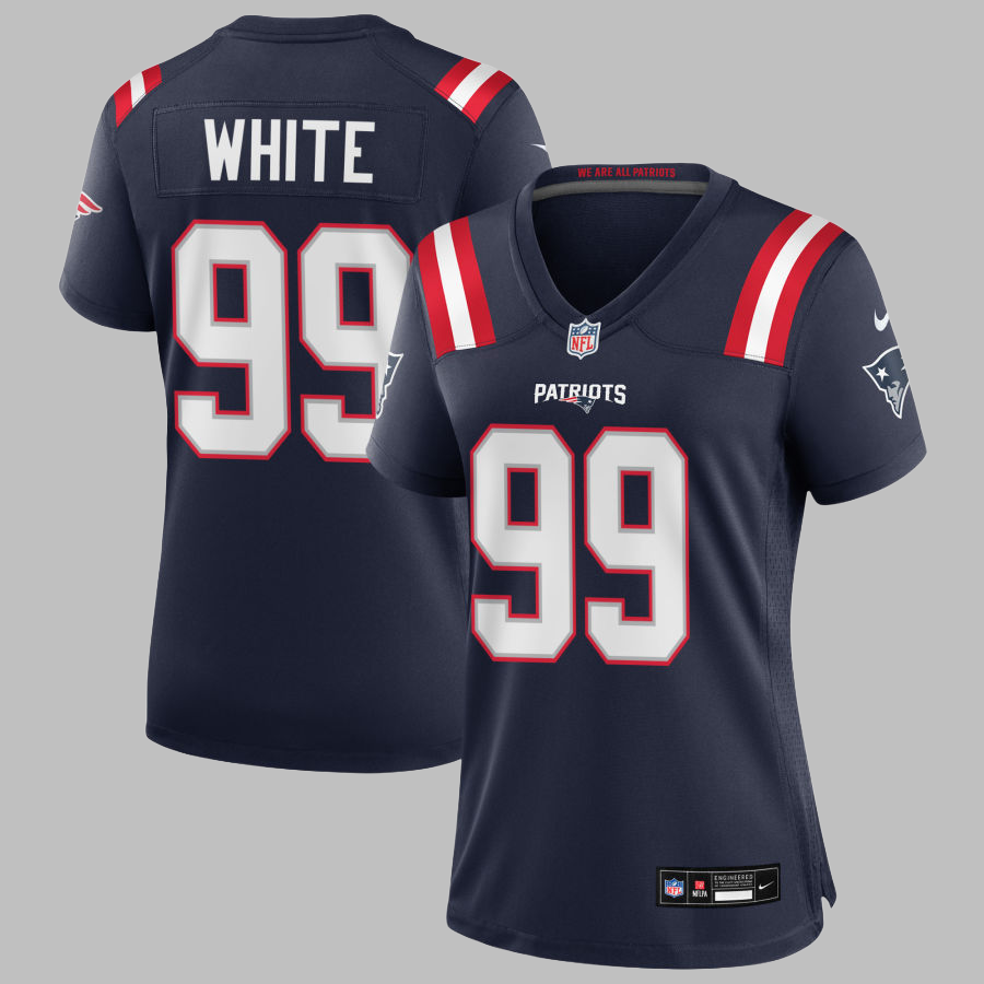 Women's New England Patriots #99 Keion White Navy All Stitched NFL Jersey
