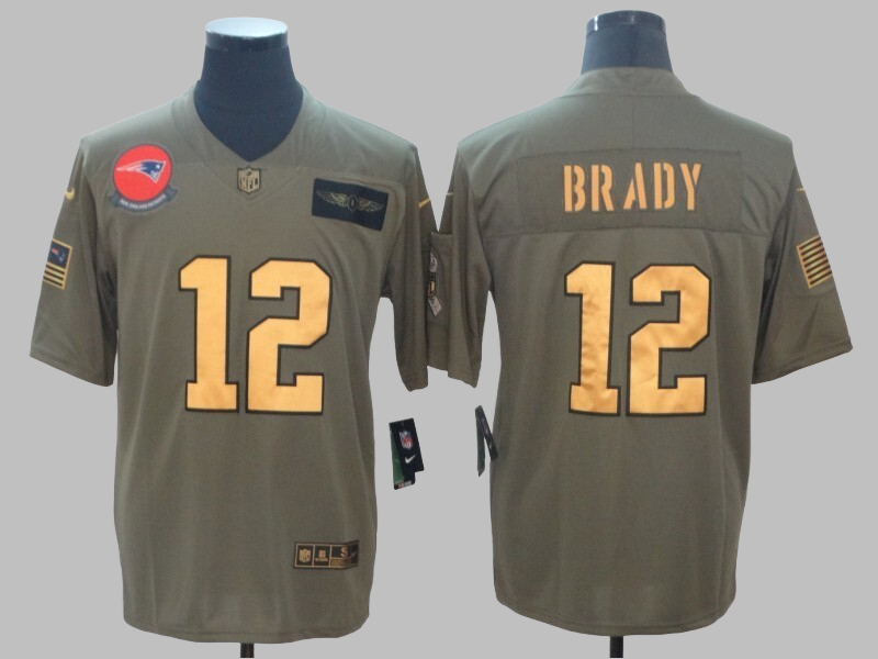 New England Patriots Custom All Stitched NFL Olive Salute To Service Limited Jersey - Men's & Women's & Youth & Toddler