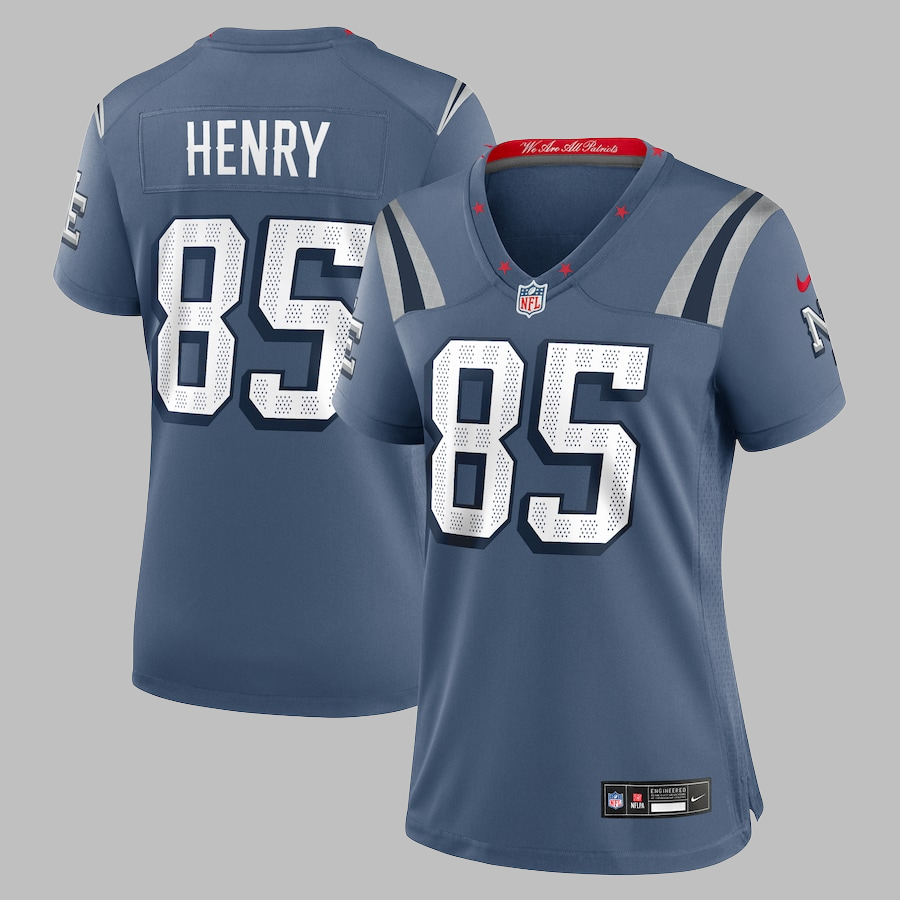 Women's New England Patriots #85 Hunter Henry All Stitched NFL Storm Blue 2025 Rivalries Collection Jersey