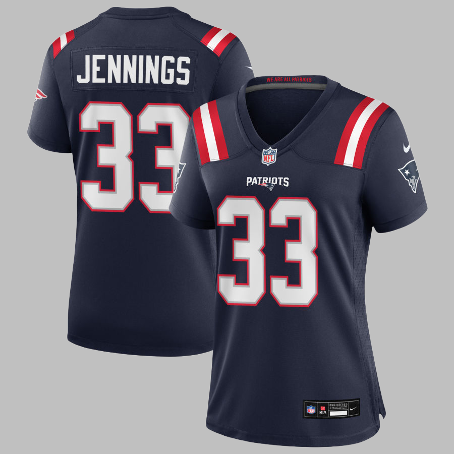 Women's New England Patriots #33 Anfernee Jennings Navy All Stitched NFL Jersey