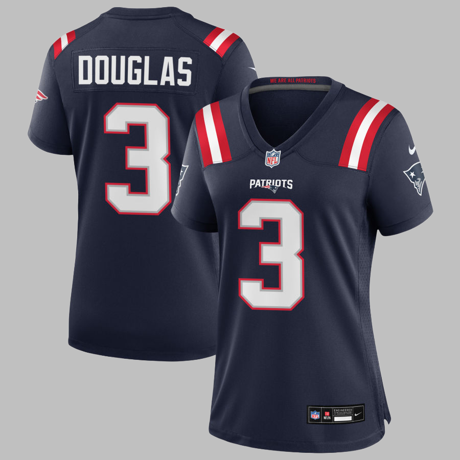 Women's New England Patriots #3 Demario Douglas Navy All Stitched NFL Jersey