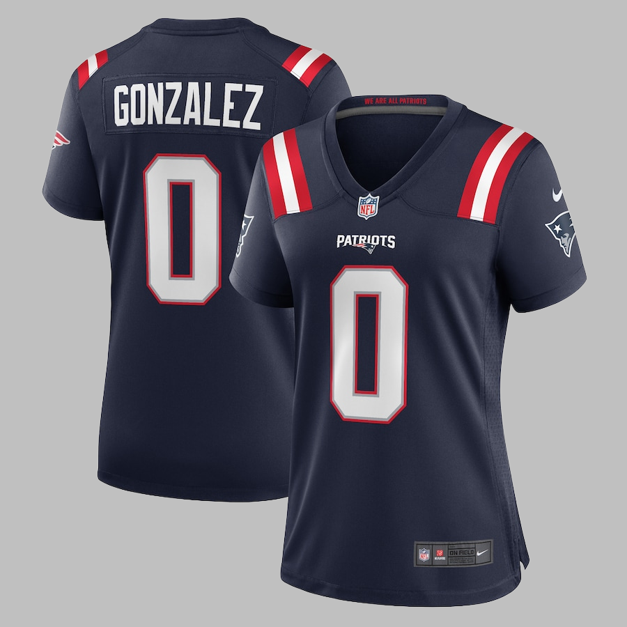 Women's New England Patriots #0 Christian Gonzalez Navy All Stitched NFL Jersey