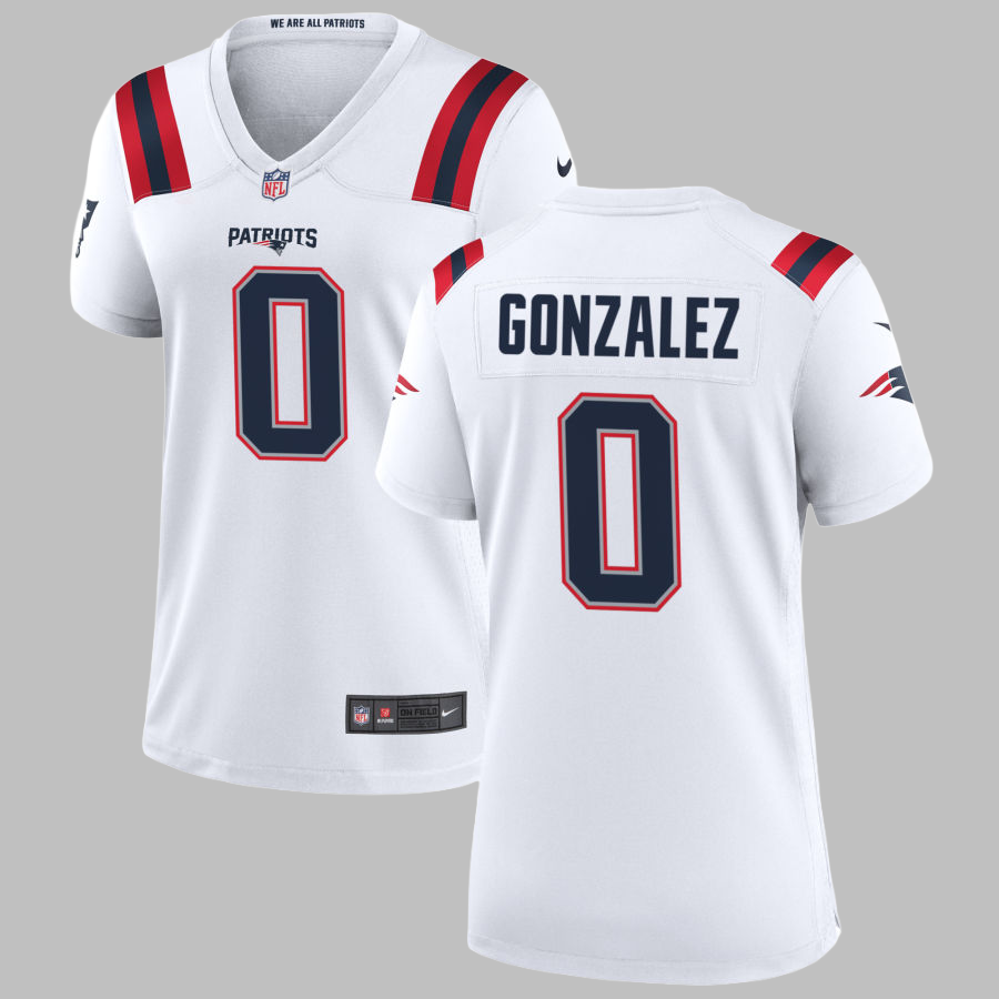 Women's New England Patriots #0 Christian Gonzalez All Stitched NFL White Jersey