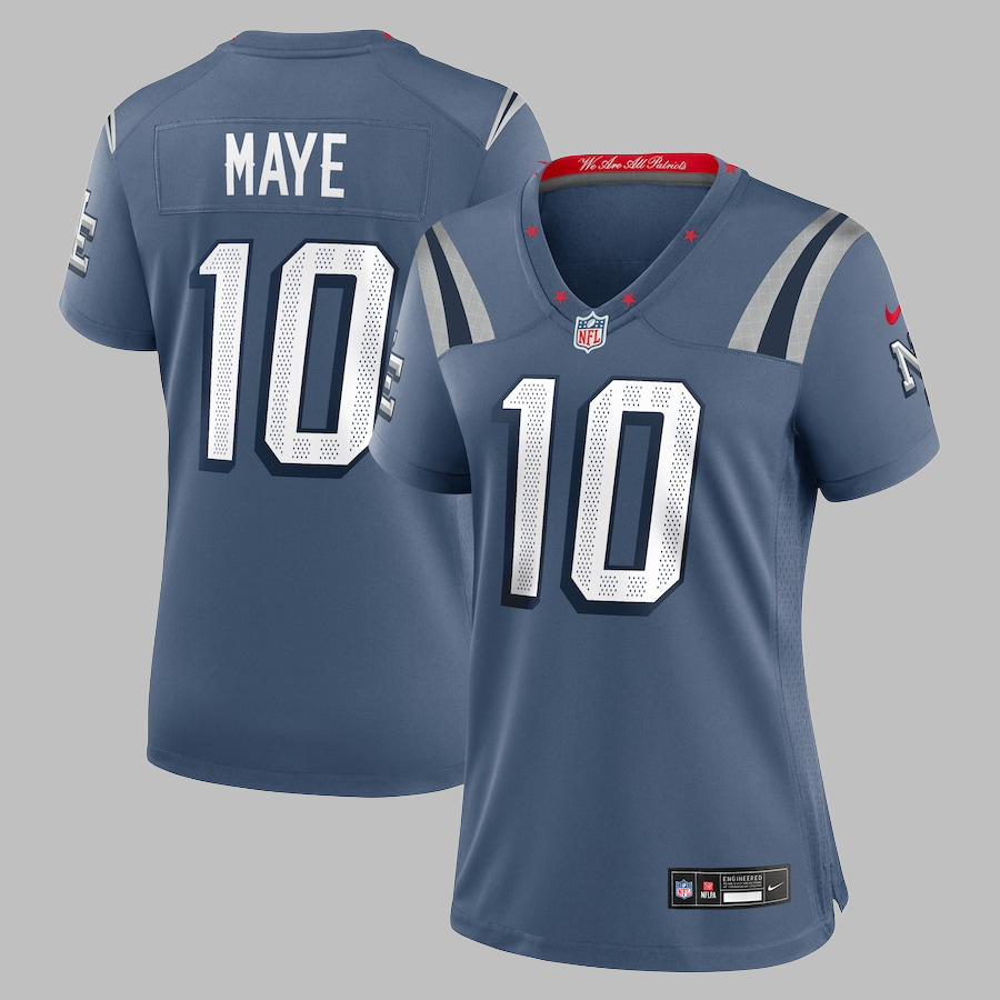 Women's New England Patriots #10 Drake Maye All Stitched NFL Storm Blue 2025 Rivalries Collection Jersey