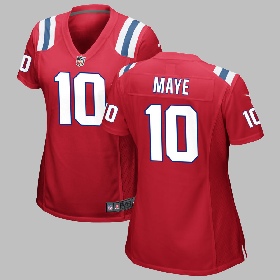 Women's New England Patriots #10 Drake Maye All Stitched NFL Red Alternate Jersey