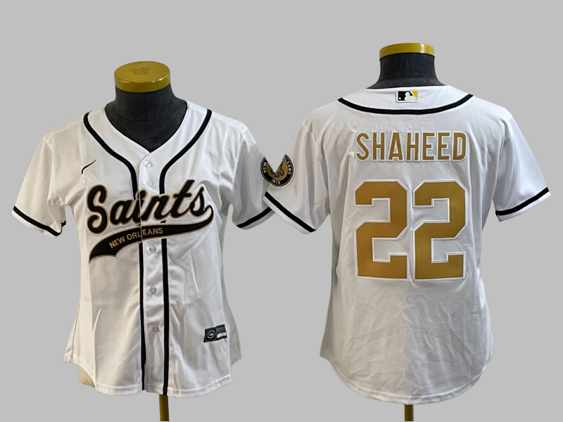 Women's New Orleans Saints #22 Rashid Shaheed All Stitched NFL x MLB Jersey NS0015