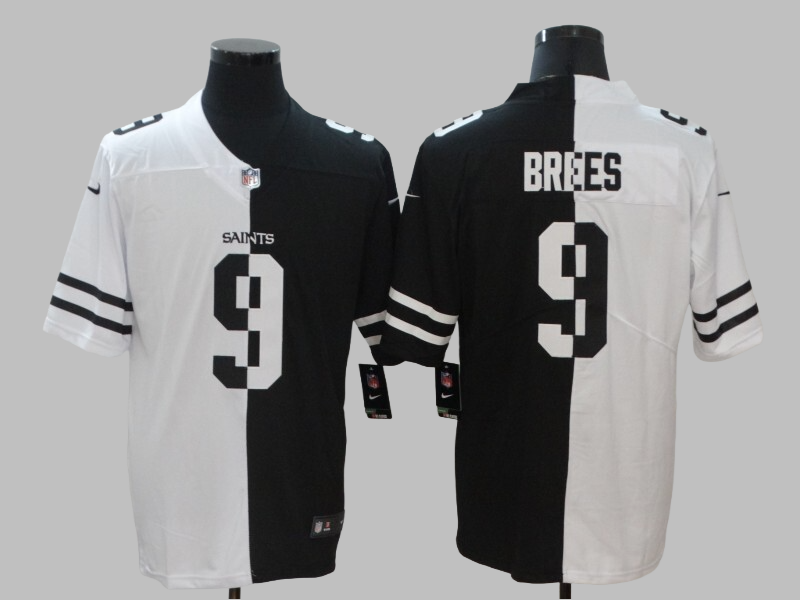 Men's New Orleans Saints #9 Drew Brees Stitched Limited NFL Jersey Split Black White