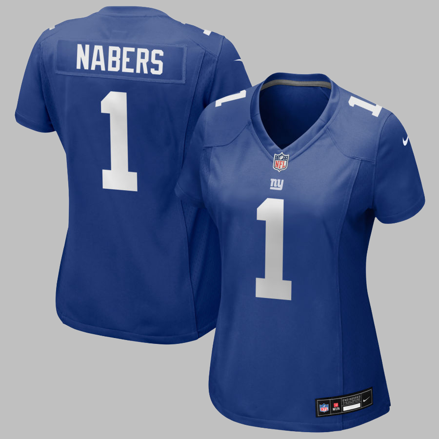 Women's New York Giants #1 Malik Nabers All Stitched NFL Royal Jersey