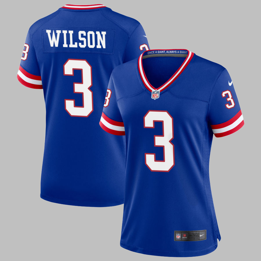 Women's New York Giants #3 Russell Wilson All Stitched NFL Royal Classic Jersey