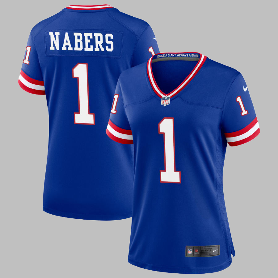Women's New York Giants #1 Malik Nabers All Stitched NFL Royal Classic Jersey