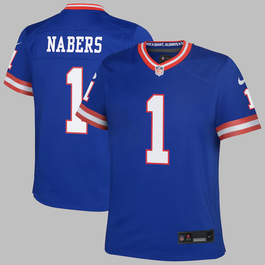 Youth New York Giants #1 Malik Nabers All Stitched NFL Royal Alternate Jersey