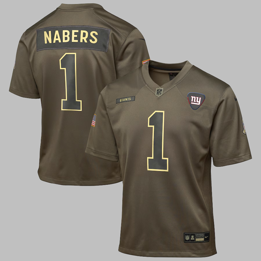 Youth New York Giants #1 Malik Nabers All Stitched NFL Olive 2025 Salute to Service Jersey