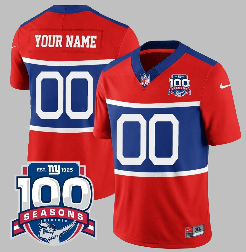 New York Giants Custom All Stitched NFL 100th Red Vapor Limited Jersey - Men's & Women's & Youth & Toddler