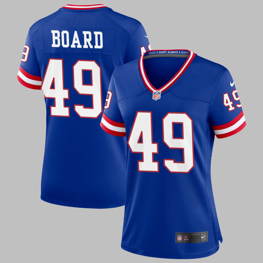 Women's New York Giants #49 Chris Board All Stitched NFL Royal Classic Jersey