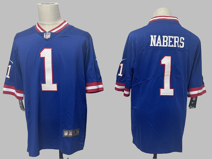 Men's New York Giants #1 Malik Nabers Stitched Limited NFL Jersey NG0001