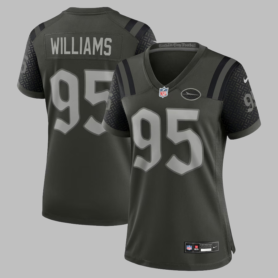 Women's New York Jets #95 Quinnen Williams All Stitched NFL Gotham Green 2025 Rivalries Collection Jersey