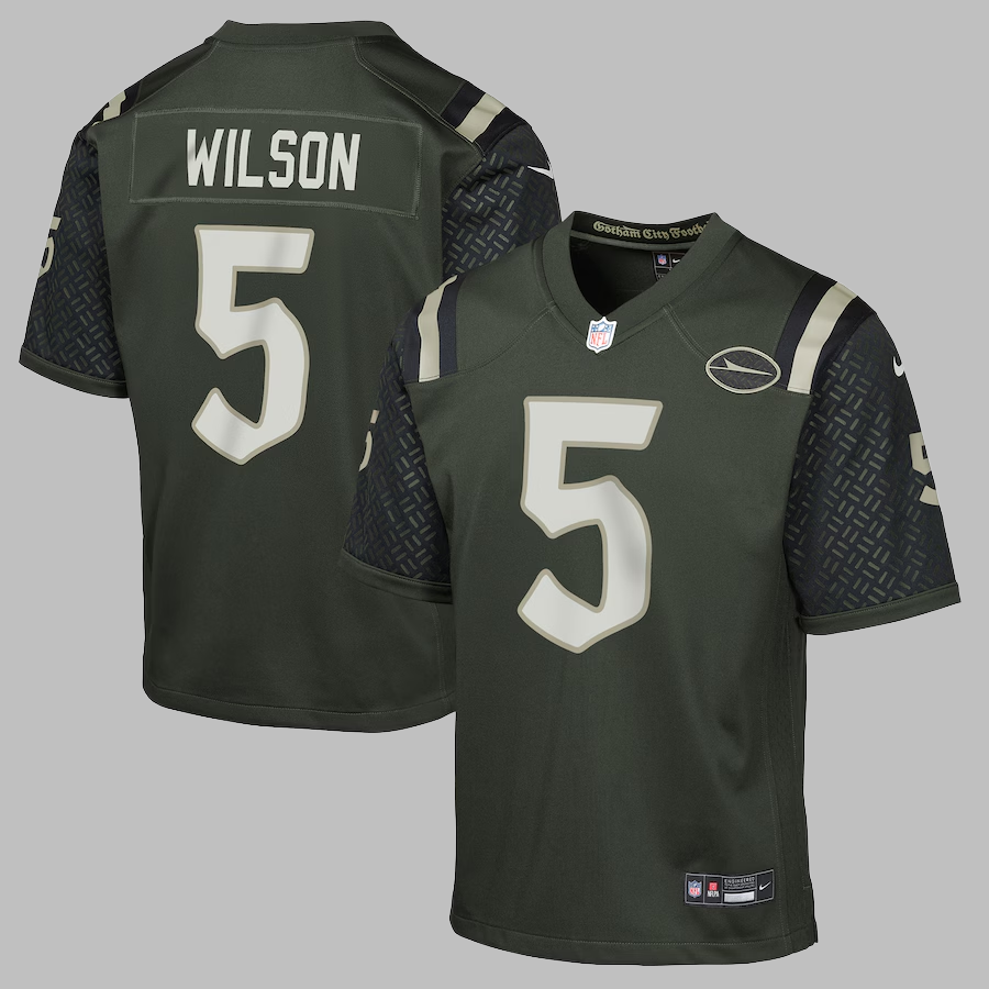 Youth New York Jets #5 Garrett Wilson All Stitched NFL Gotham Green 2025 Rivalries Collection Jersey
