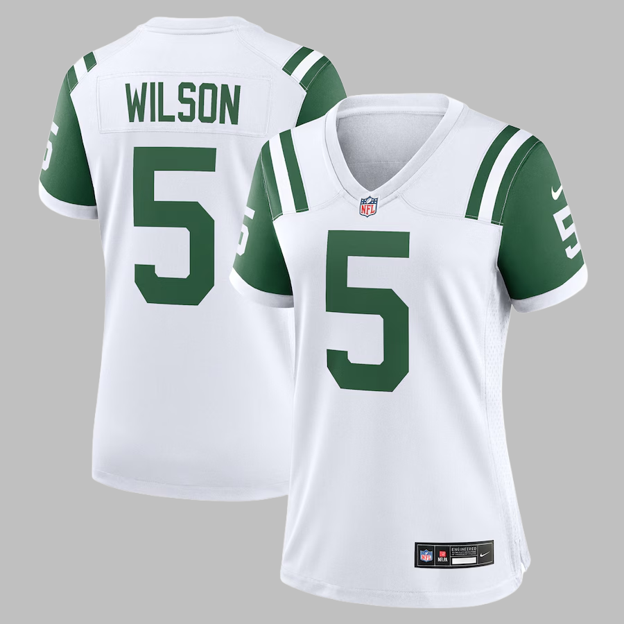 Women's New York Jets #5 Garrett Wilson All Stitched NFL White Classic Alternate Jersey