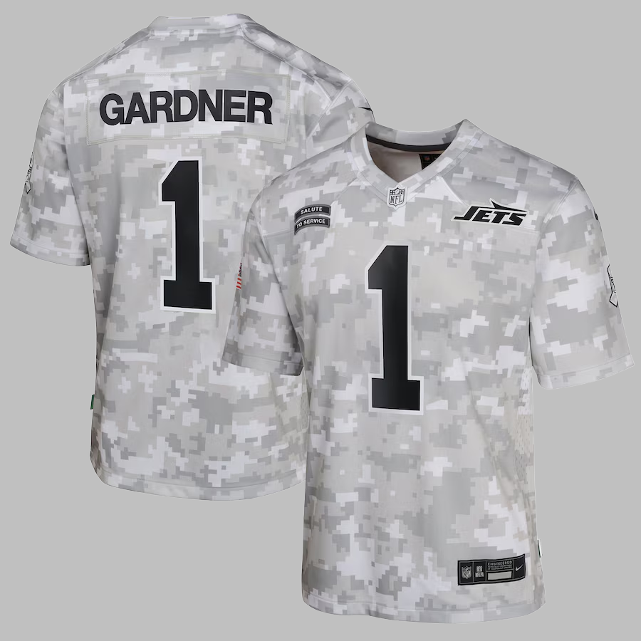 Youth New York Jets #1 Sauce Gardner All Stitched NFL Camo 2024 Salute to Service Jersey
