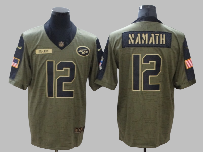 Men's New York Jets #12 Joe Namath Stitched Olive Salute To Service Limited NFL Jersey