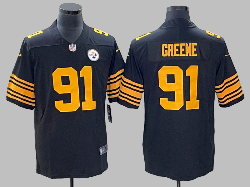 Men's Pittsburgh Steelers #91 Kevin Greene Stitched Limited NFL Jersey Black Yellow