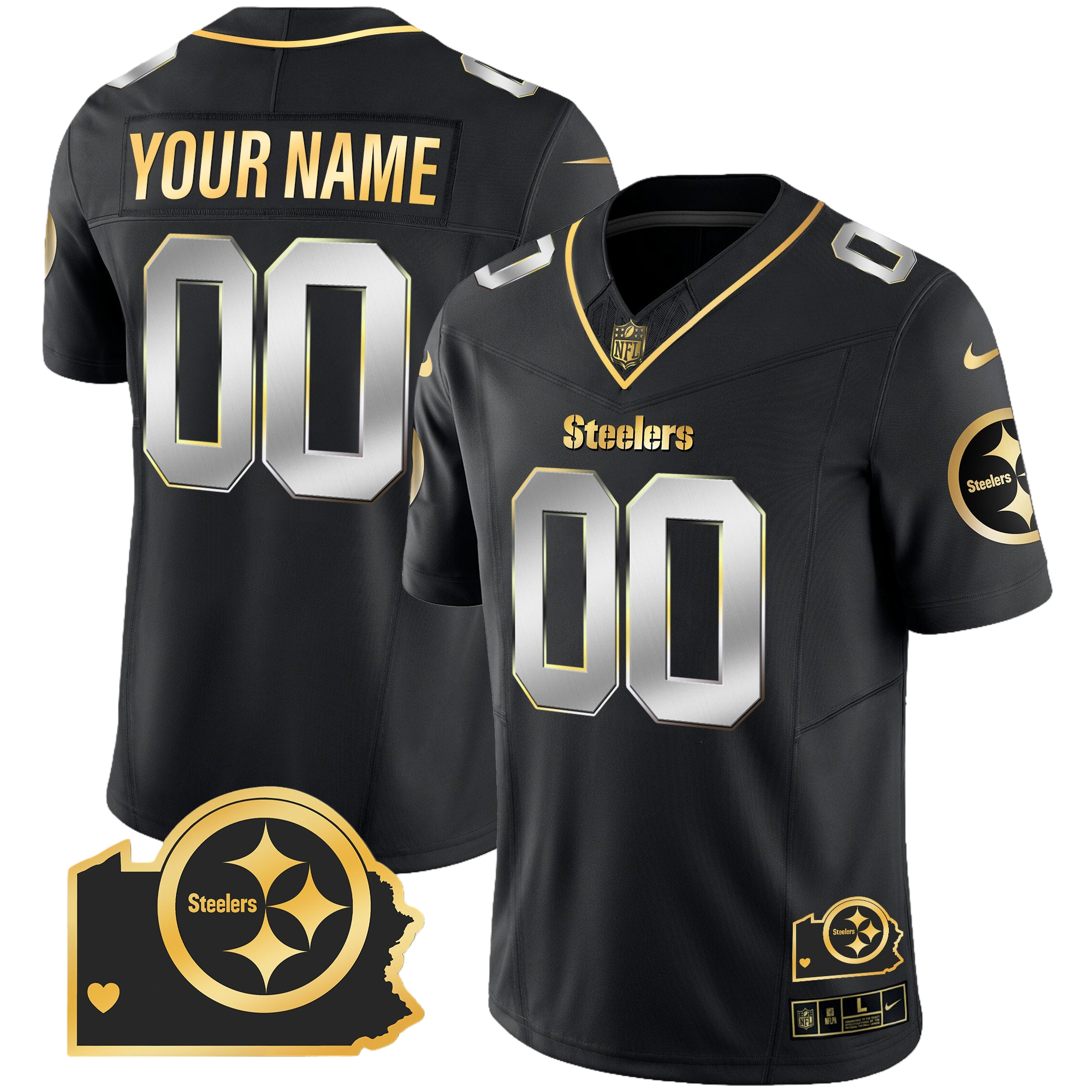 Pittsburgh Steelers Home Patch Gold Vapor Custom Jersey – All Stitched 1