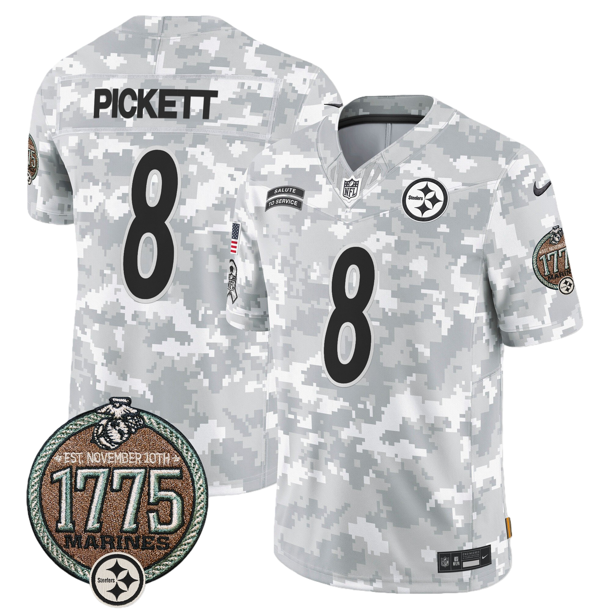 Pittsburgh Steelers 2024 Salute to Service Establishment Year Patch Vapor Limited Jersey – All Stitched 6- #8 Kenny Pickett