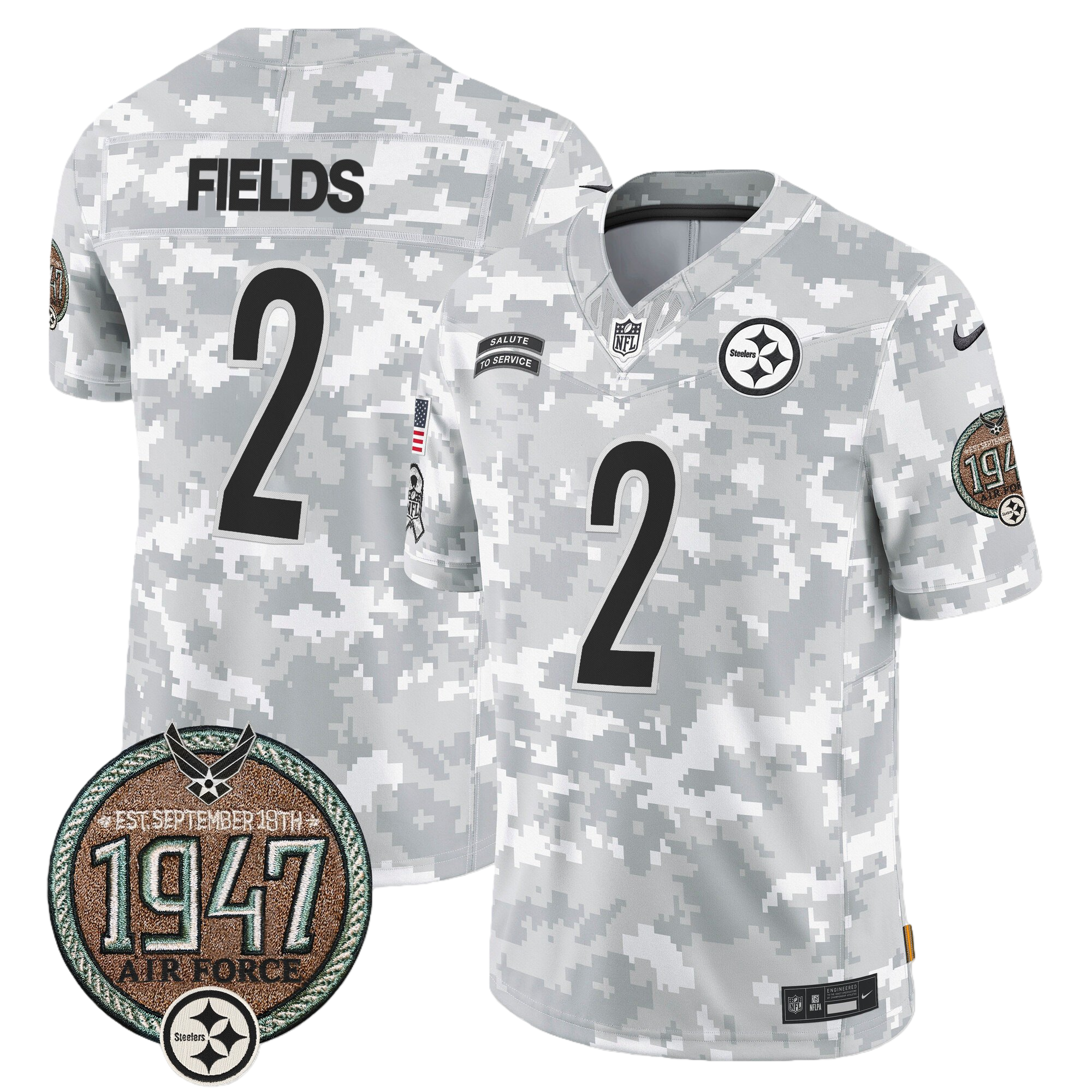 Pittsburgh Steelers 2024 Salute to Service Vapor Limited Jersey – Arctic Camo – All Stitched 8- #2 Justin Fields