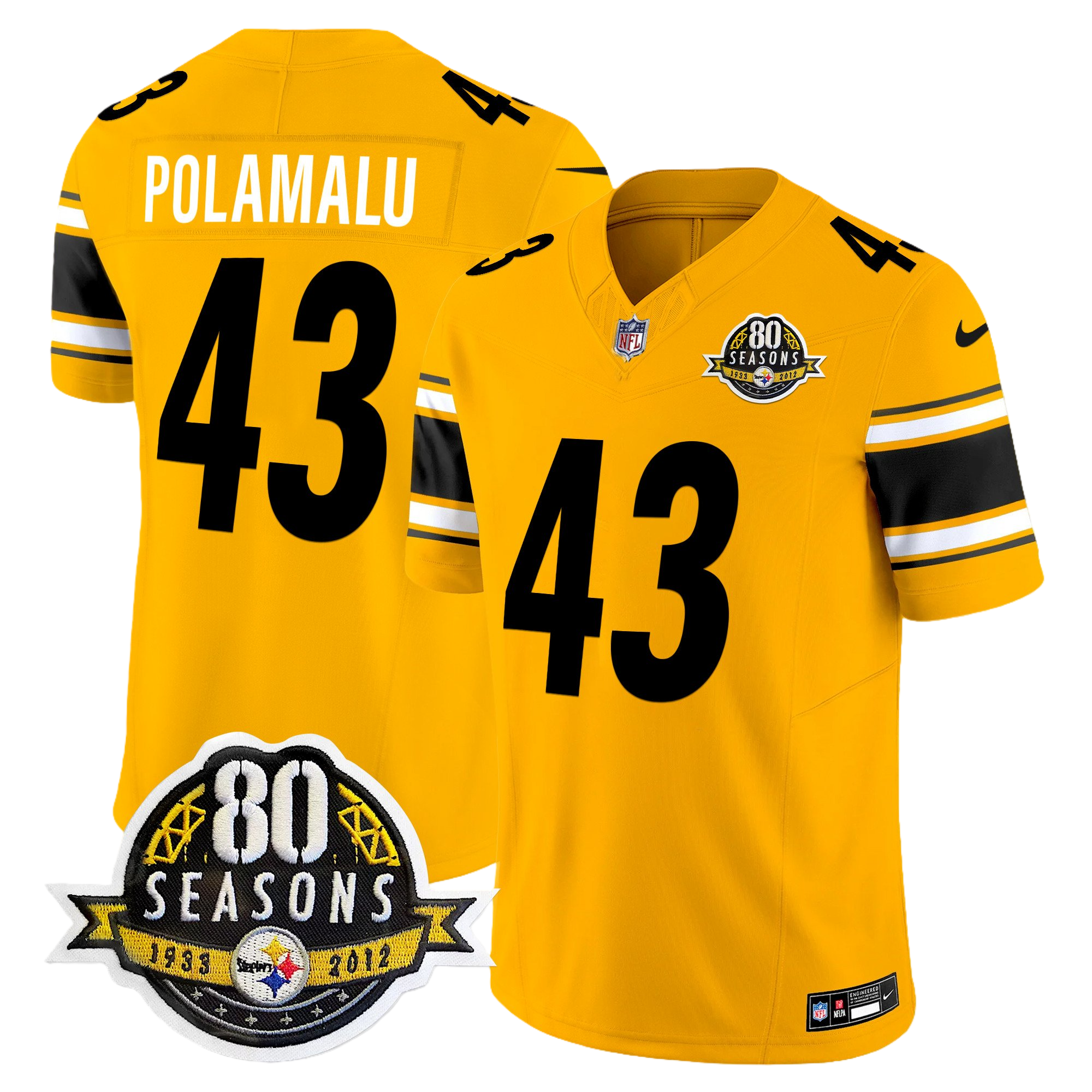 Pittsburgh Steelers 80th Anniversary Patch Vapor Limited Jersey – All Stitched 46- #43 Troy Polamalu