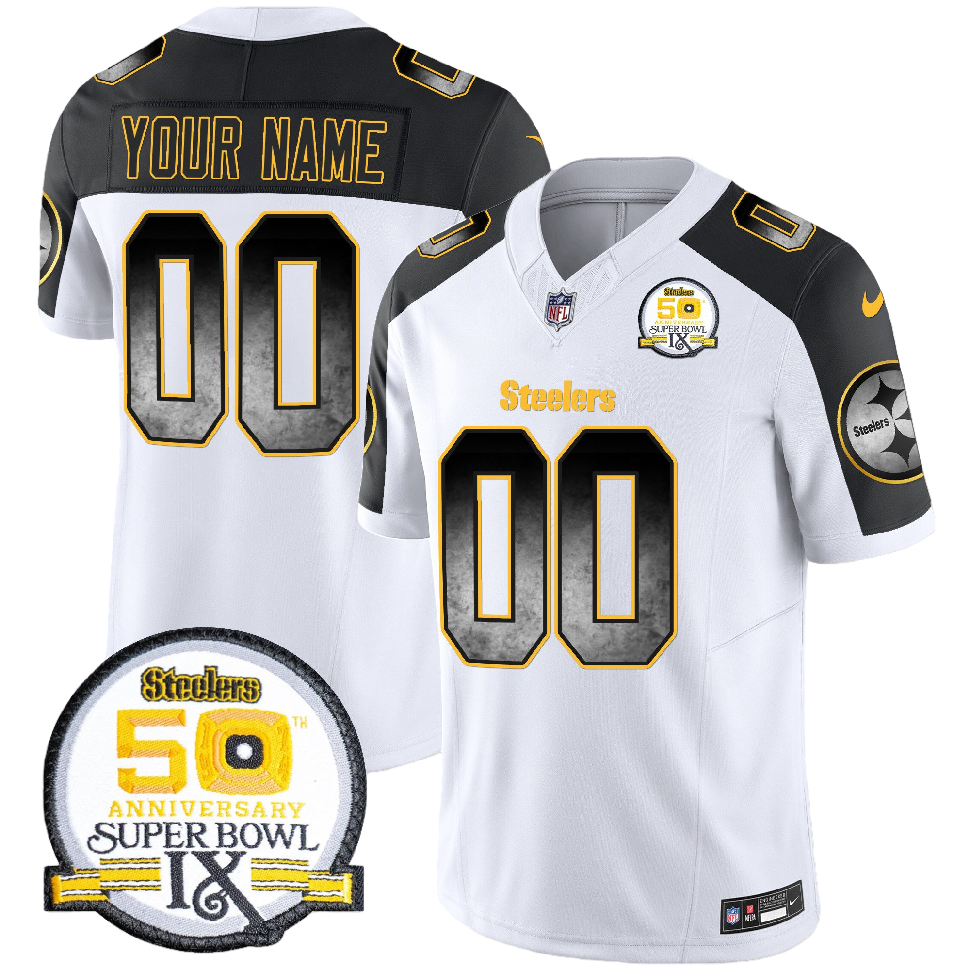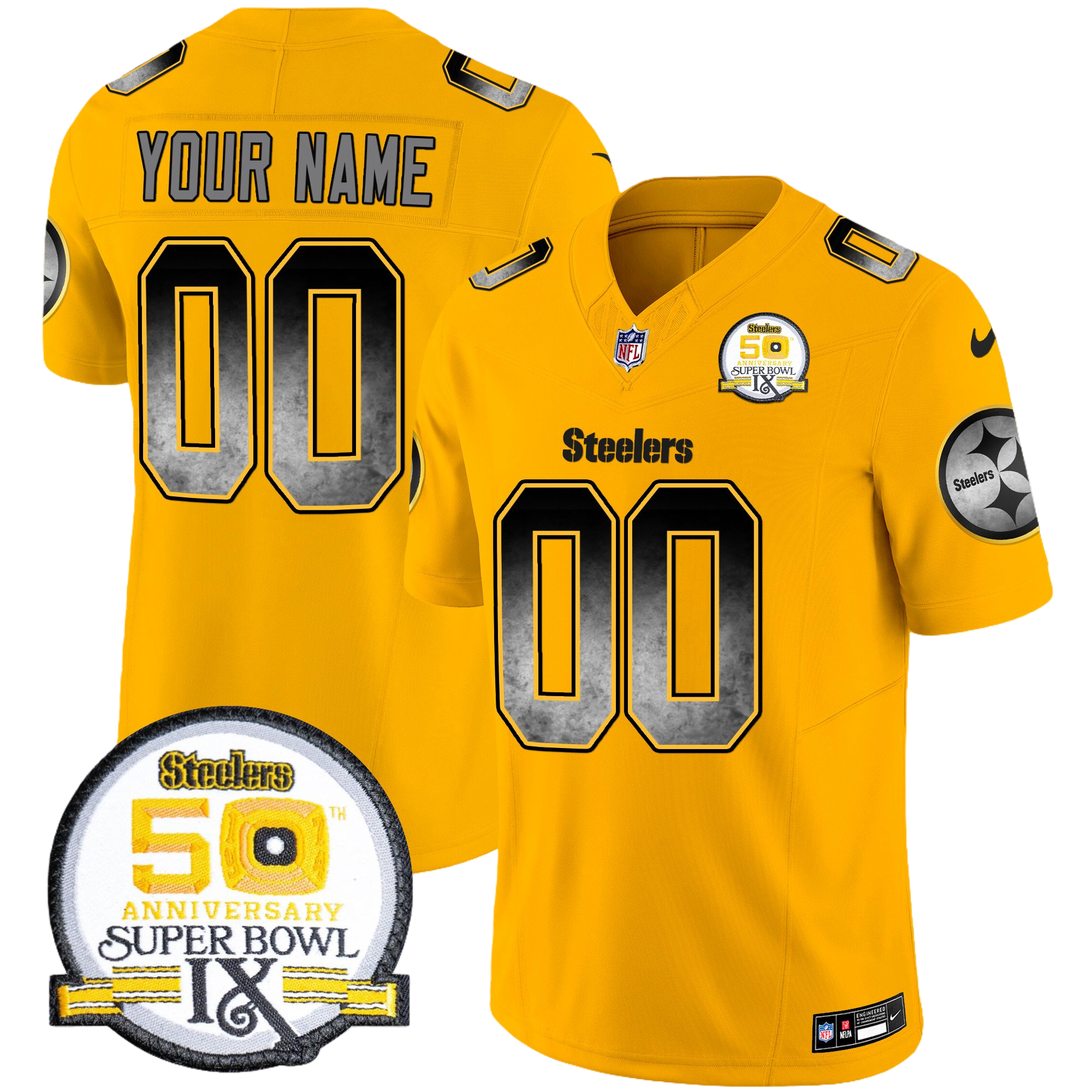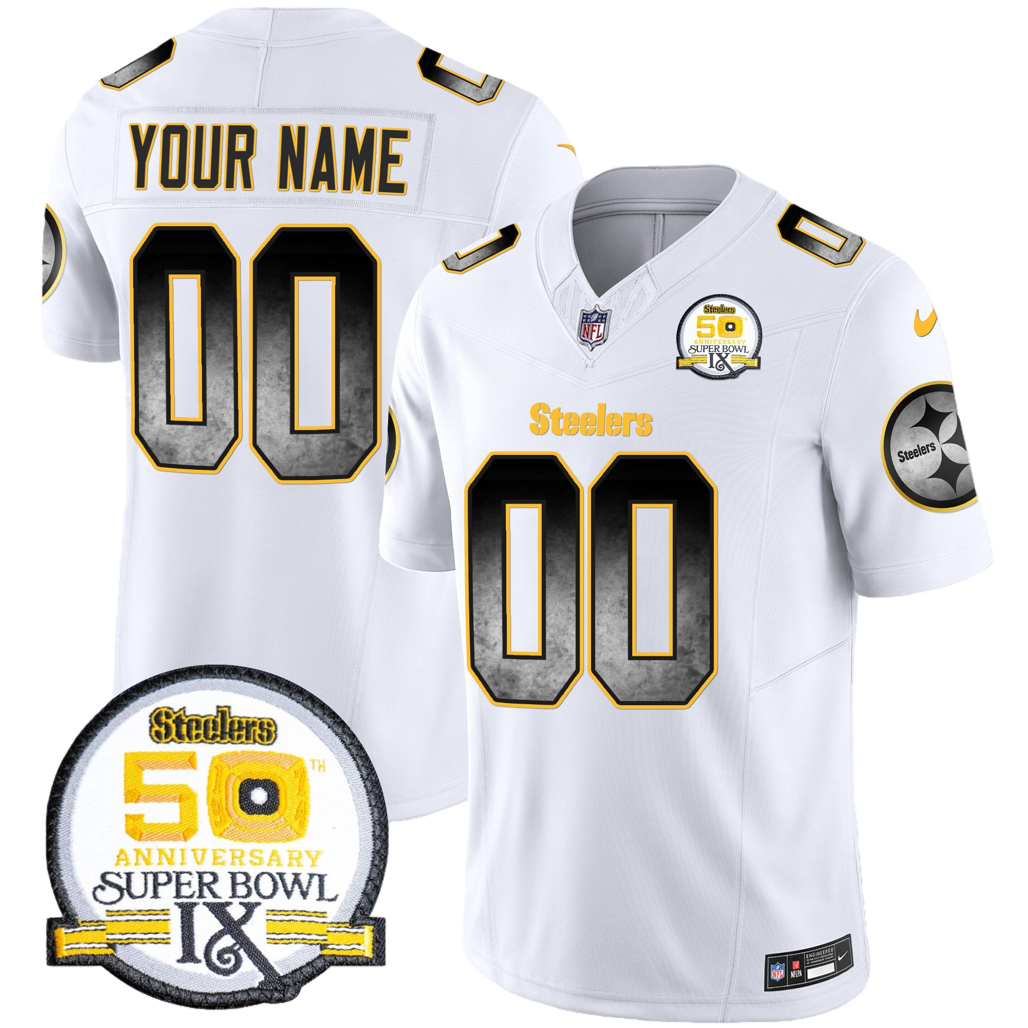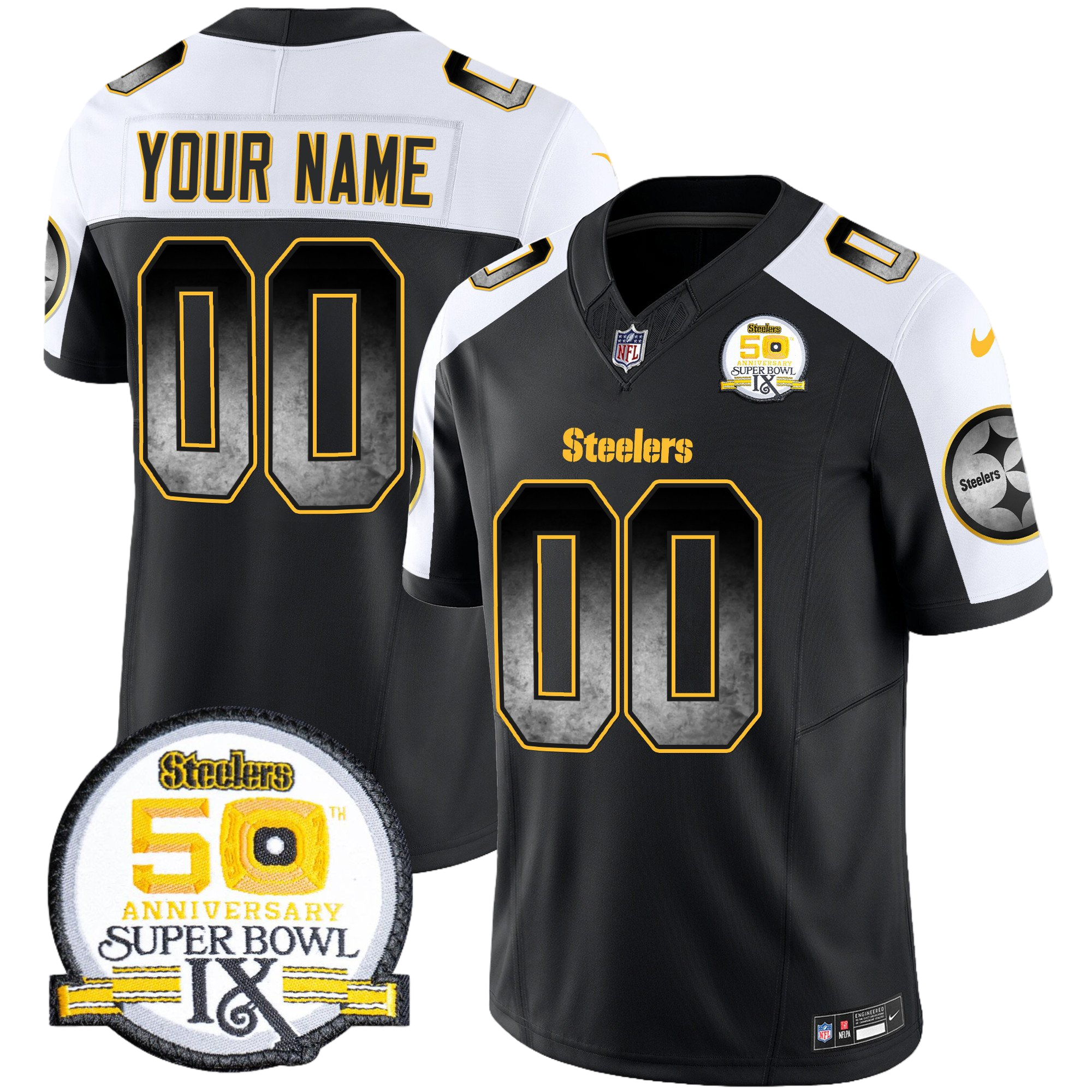 Pittsburgh Steelers Arch Smoke 50th Anniversary Of Super Bowl IX Patch Vapor Limited Custom Jersey – All Stitched 1
