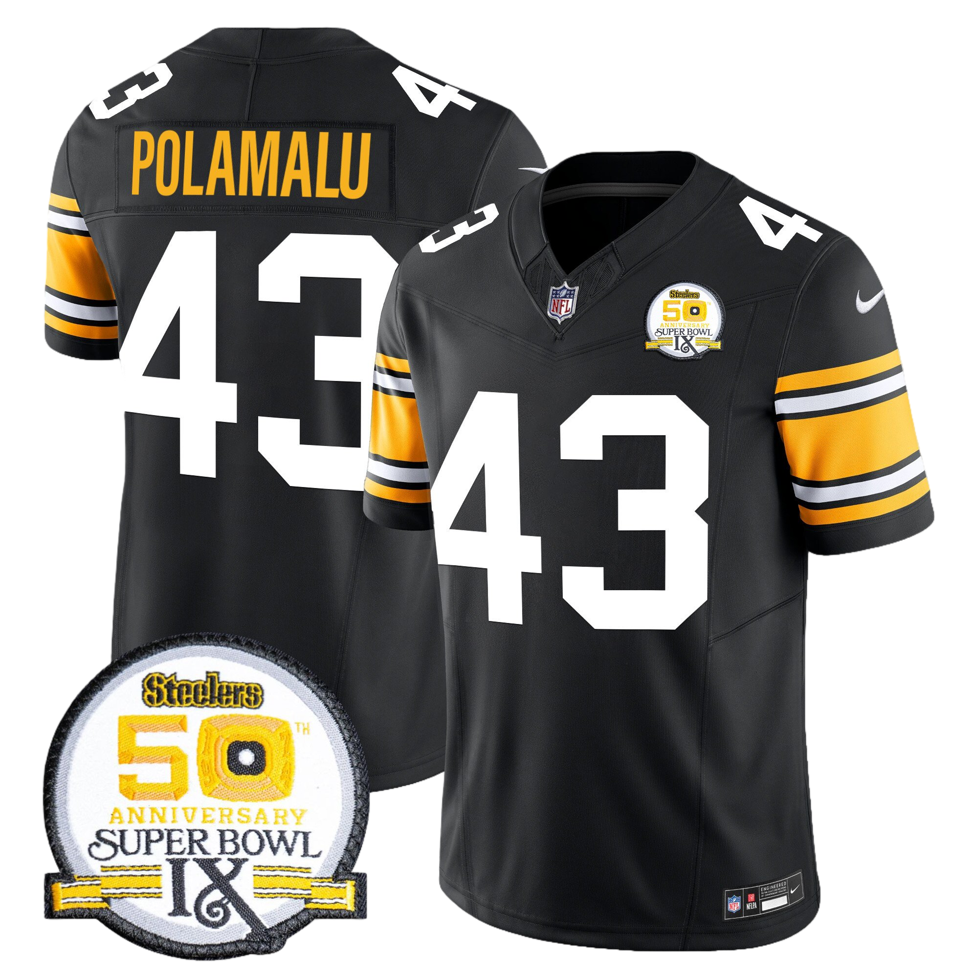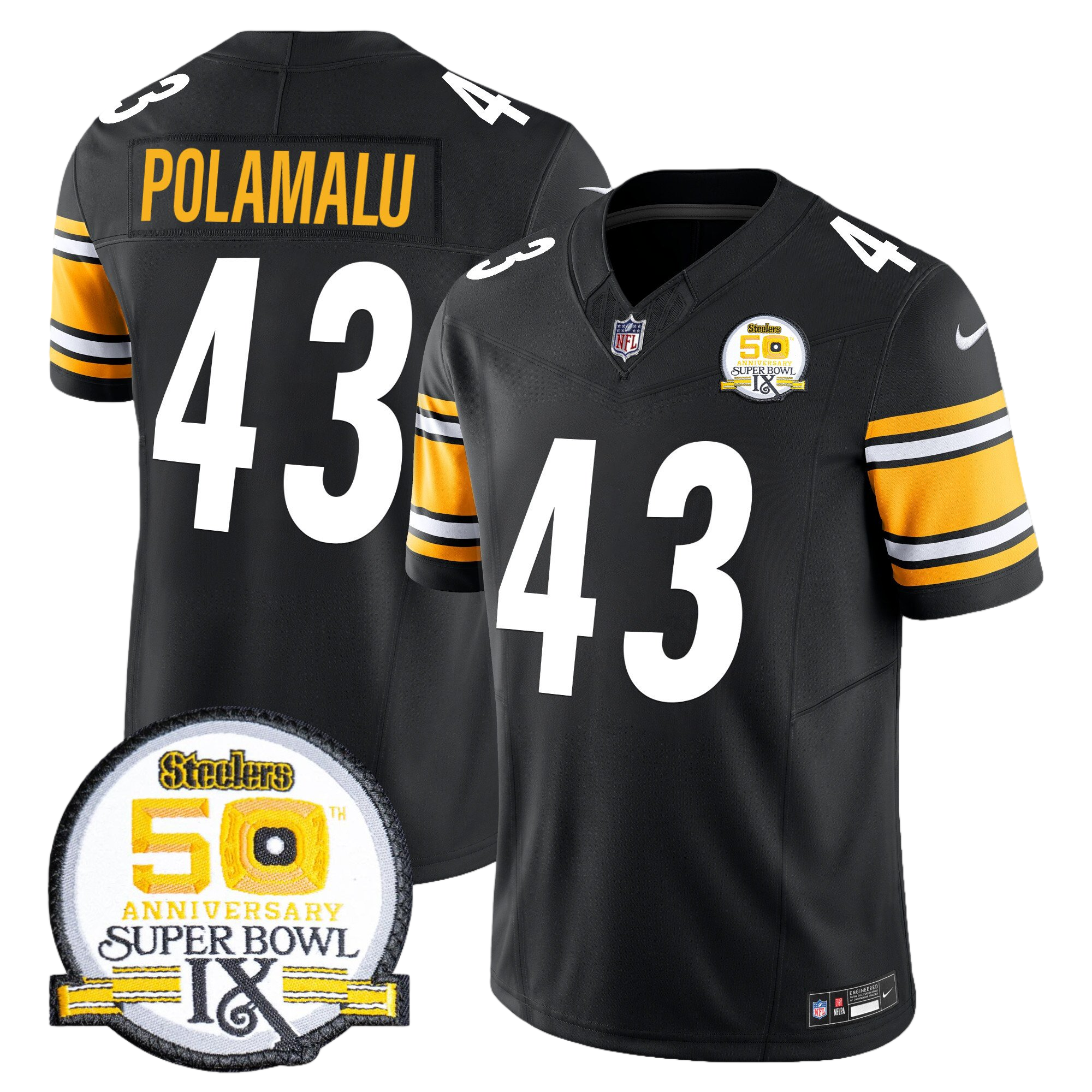 Pittsburgh Steelers 50th Anniversary Of Super Bowl IX Patch Vapor Limited Jersey – All Stitched 18- #43 Troy Polamalu