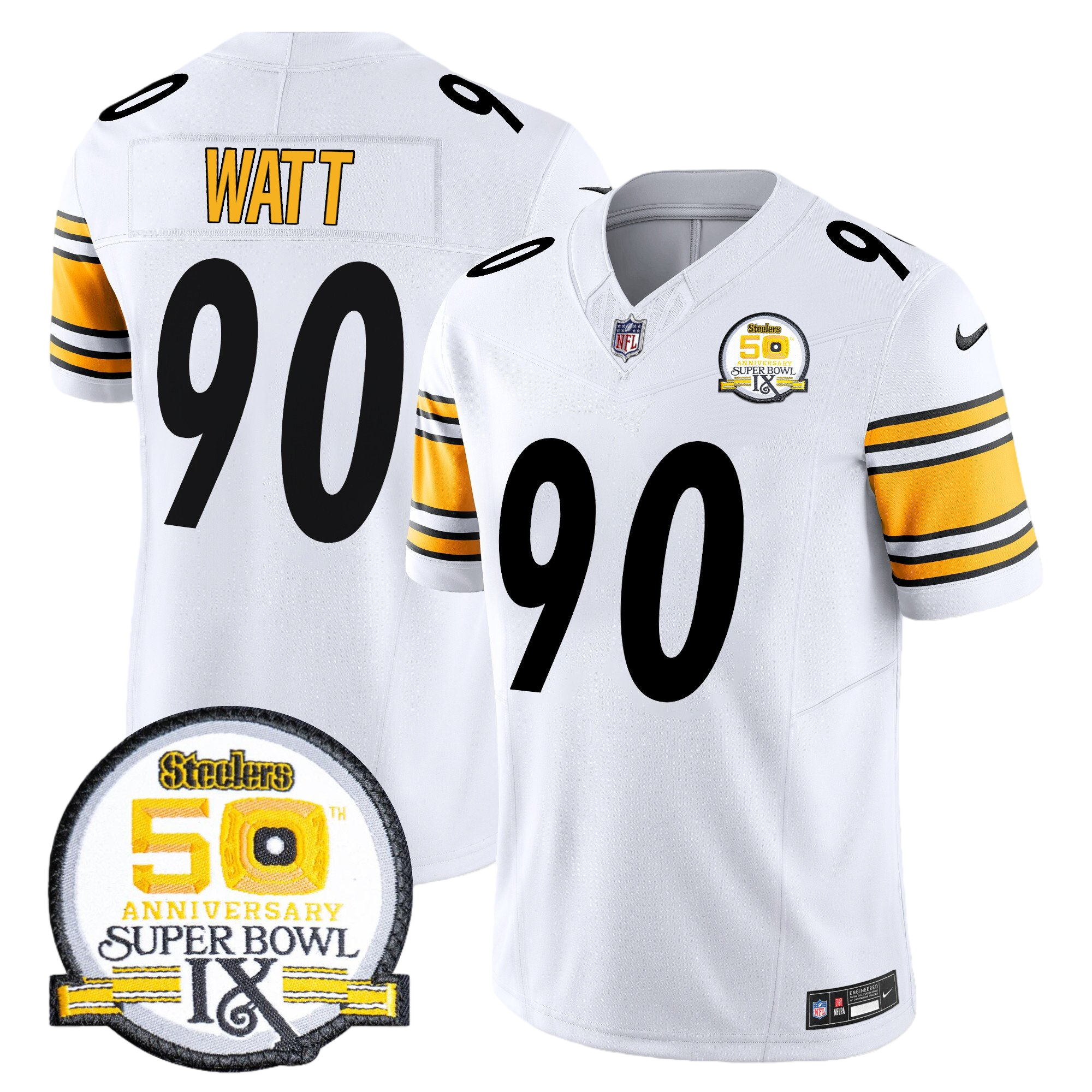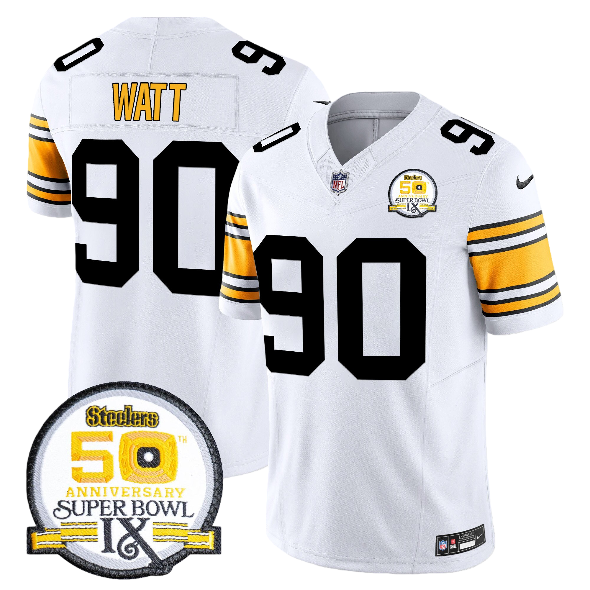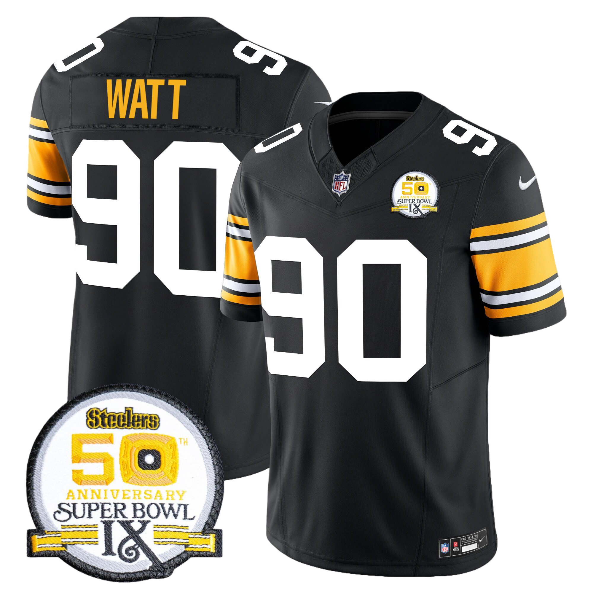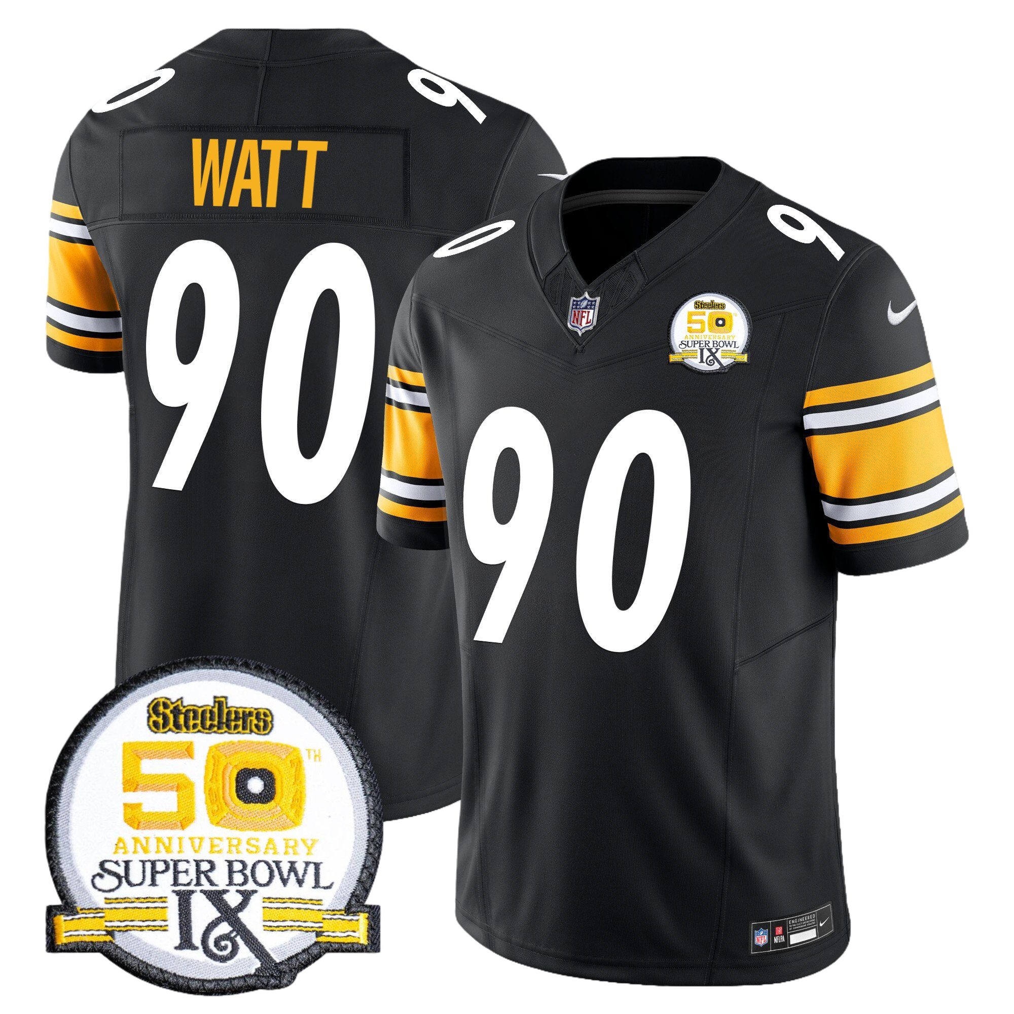 Pittsburgh Steelers 50th Anniversary Of Super Bowl IX Patch Vapor Limited Jersey – All Stitched 30- #90 T.J. Watt