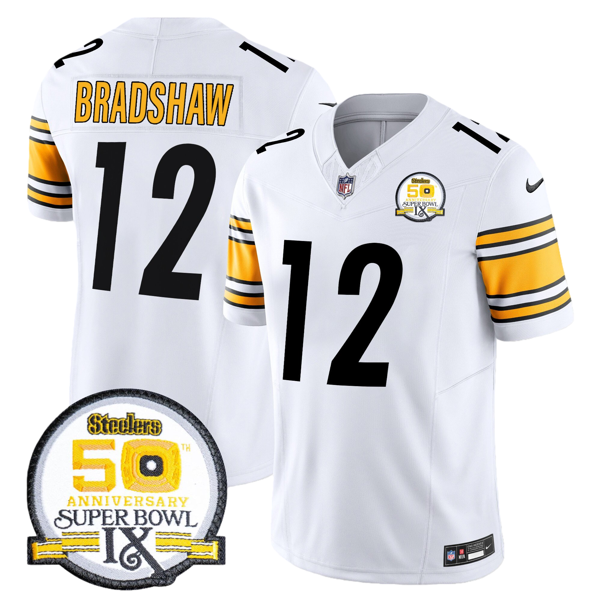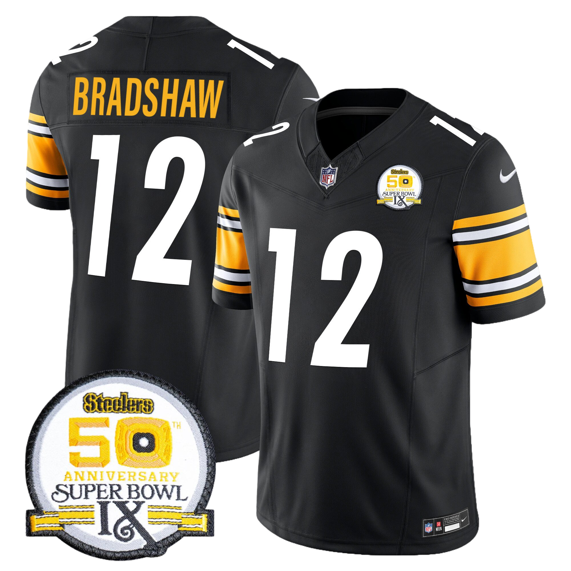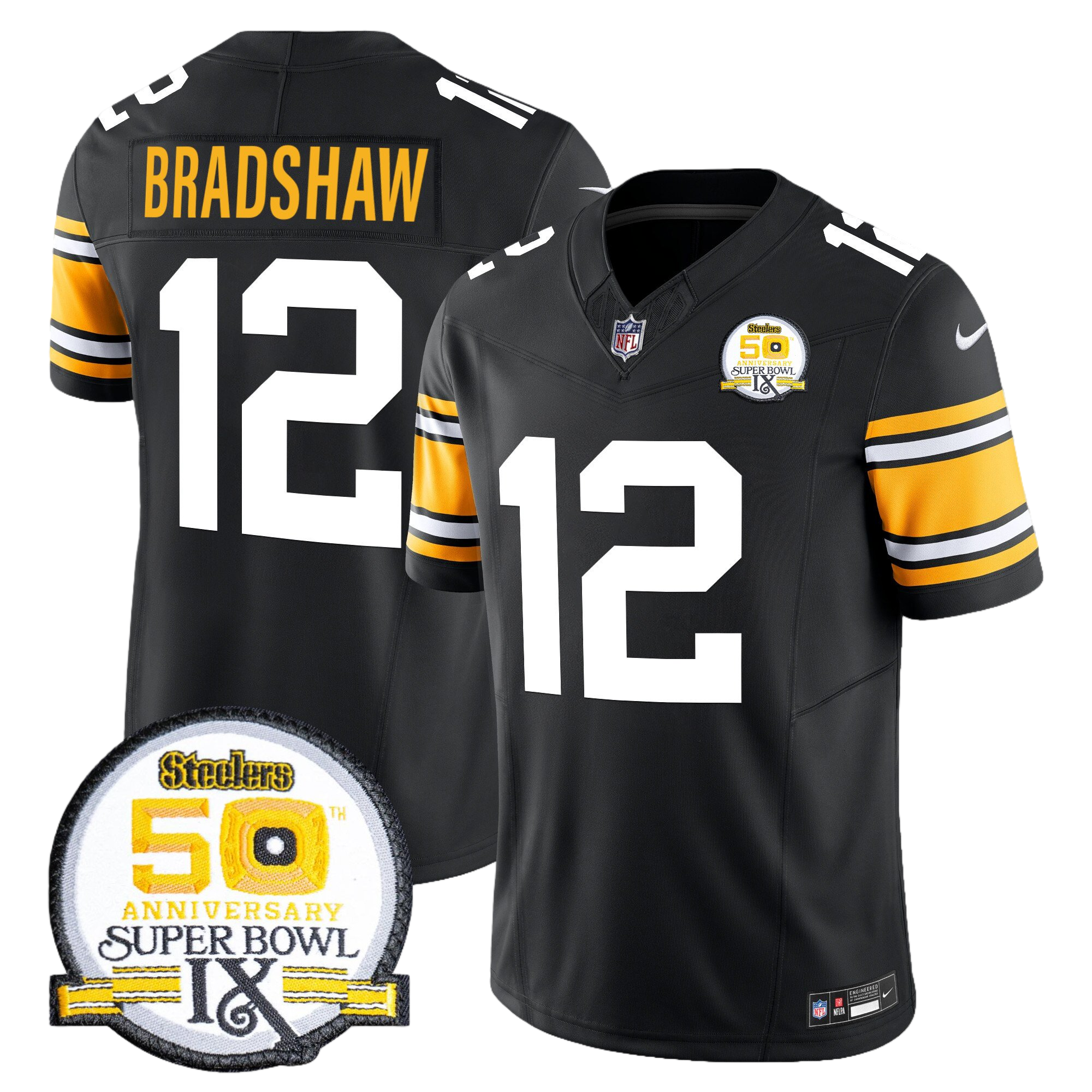 Pittsburgh Steelers 50th Anniversary Of Super Bowl IX Patch Vapor Limited Jersey – All Stitched 26- #12 Terry Bradshaw