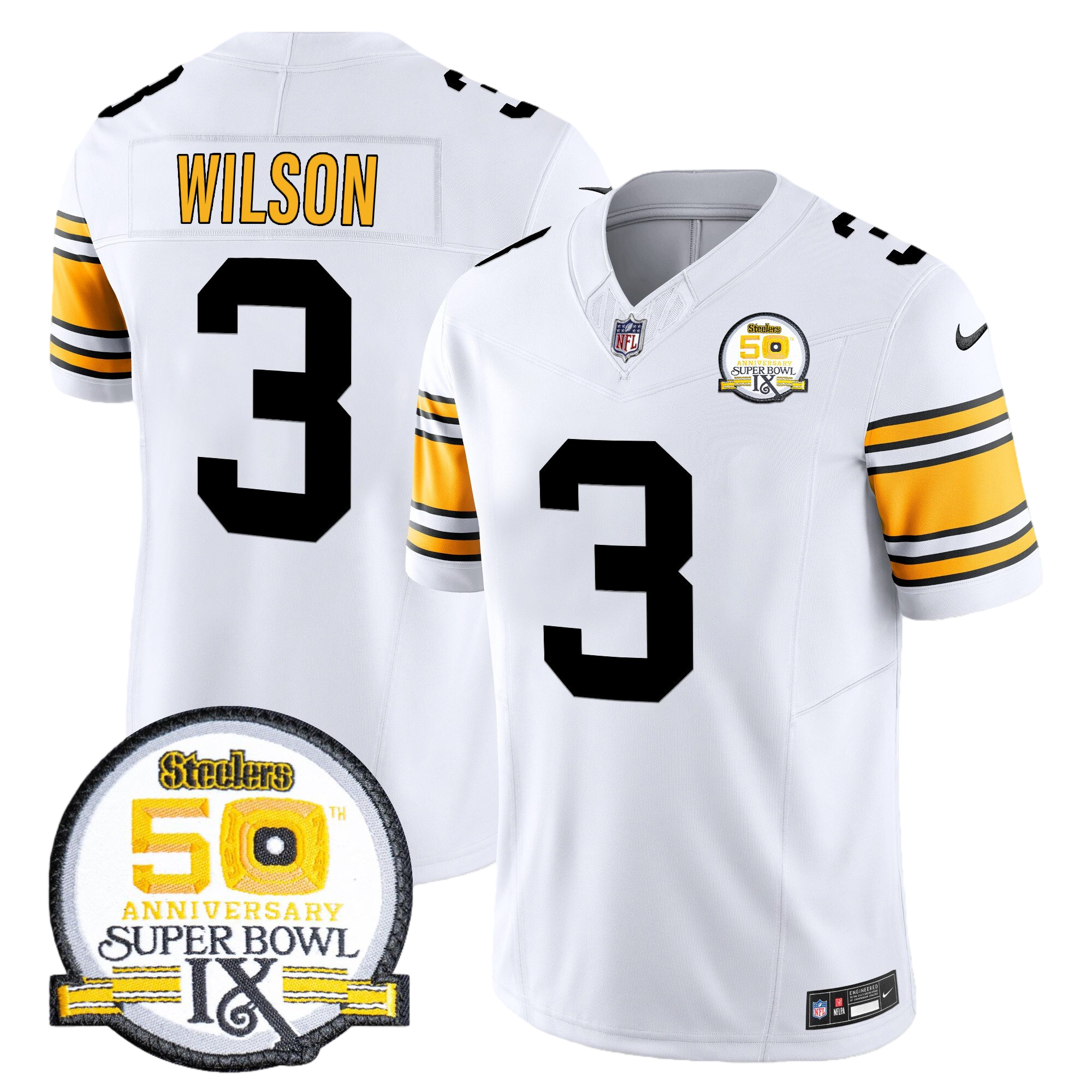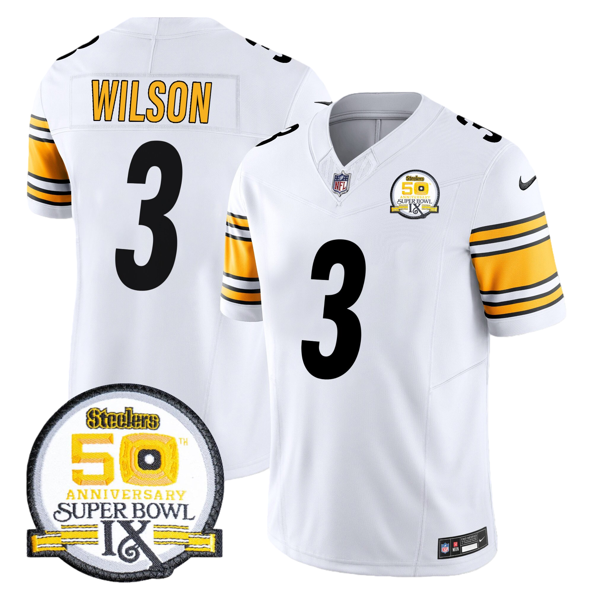 Pittsburgh Steelers 50th Anniversary Of Super Bowl IX Patch Vapor Limited Jersey – All Stitched 11- #3 Russell Wilson