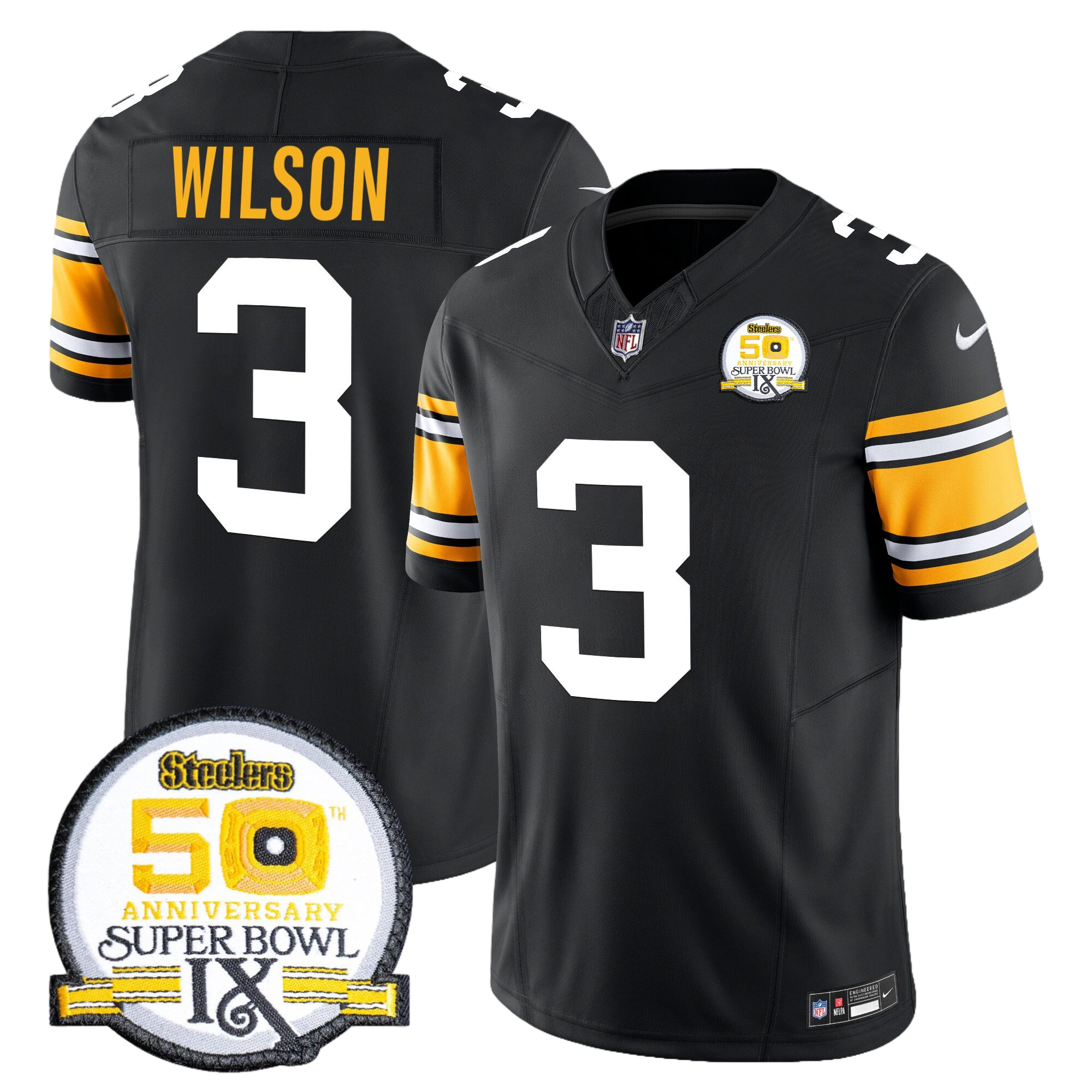 Pittsburgh Steelers 50th Anniversary Of Super Bowl IX Patch Vapor Limited Jersey – All Stitched 23- #3 Russell Wilson