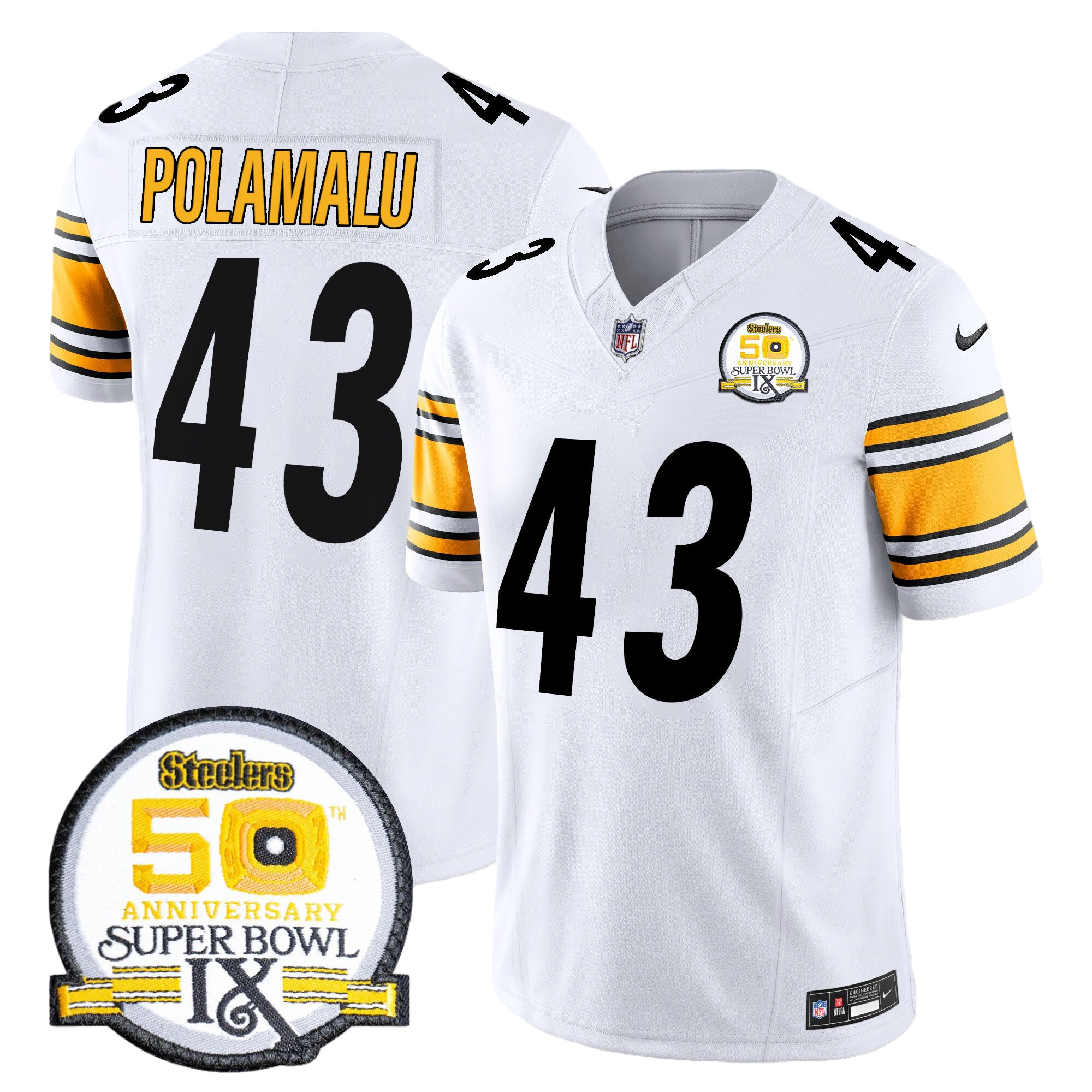Pittsburgh Steelers 50th Anniversary Of Super Bowl IX Patch Vapor Limited Jersey – All Stitched 19- #43 Troy Polamalu