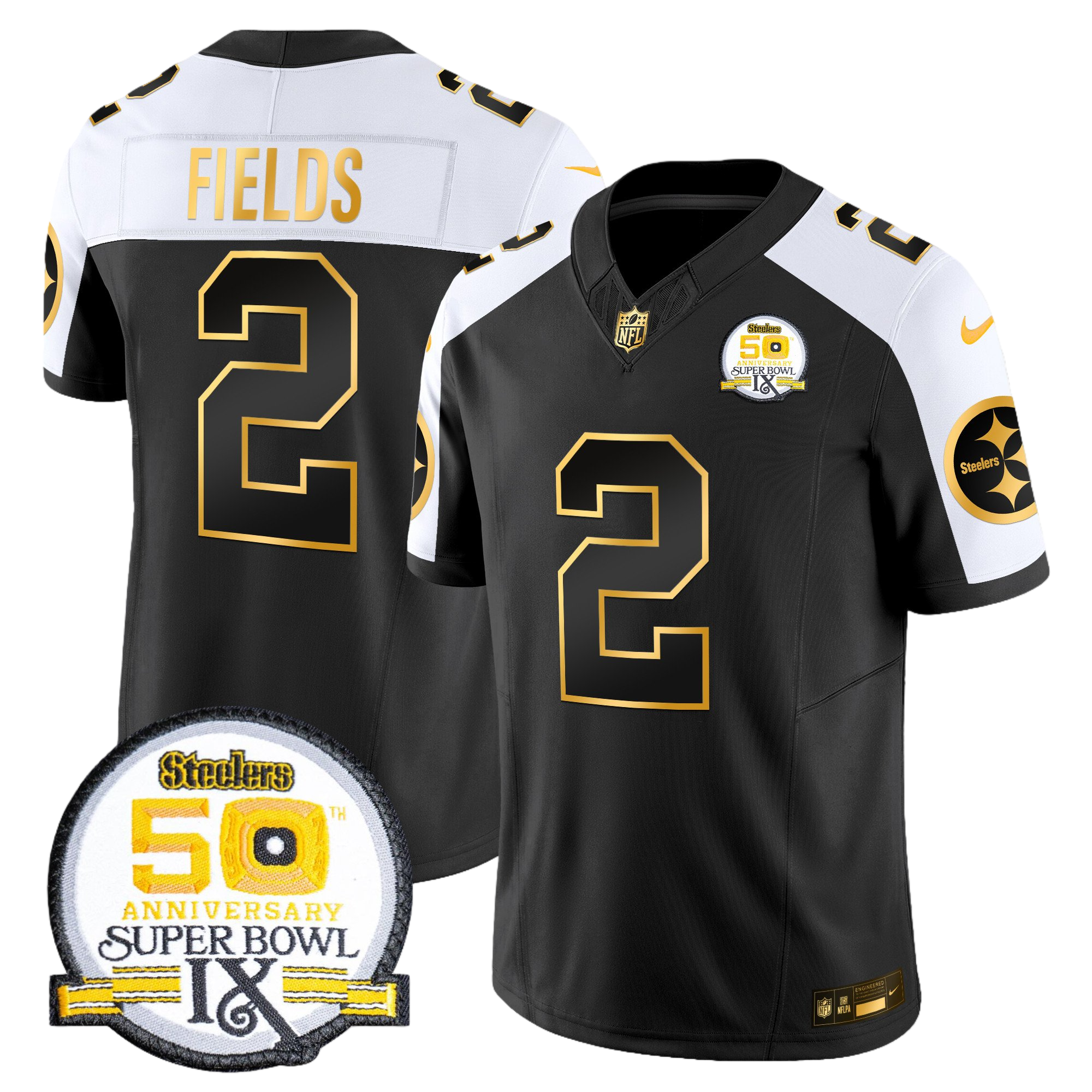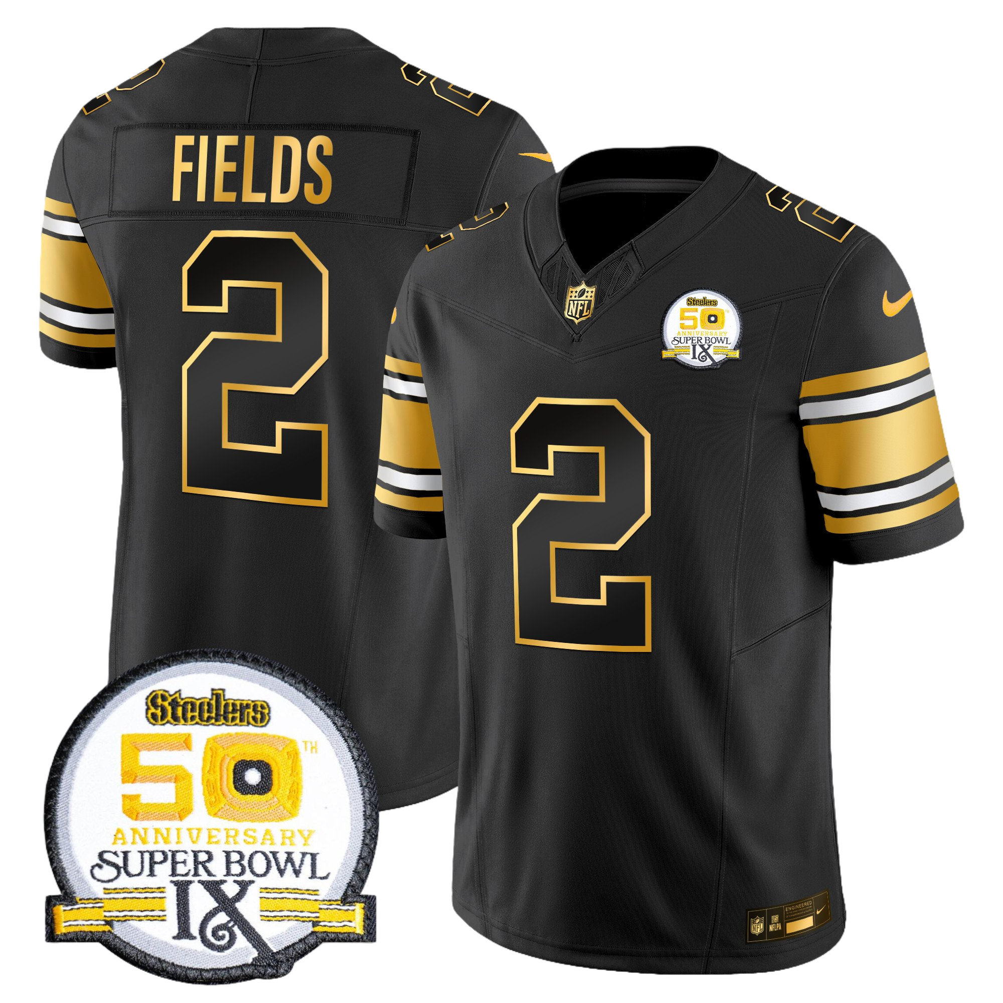 Pittsburgh Steelers 50th Anniversary of Super Bowl IX Patch Gold Vapor Limited Jersey – All Stitched 36- #2 Justin Fields