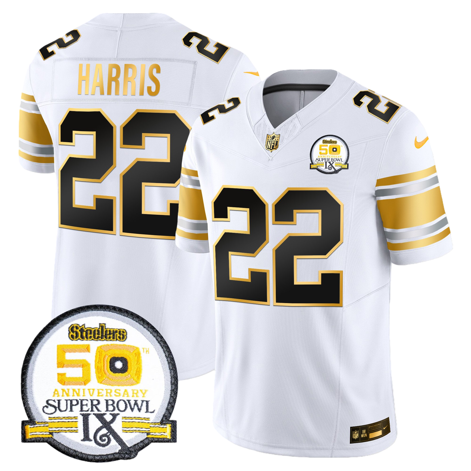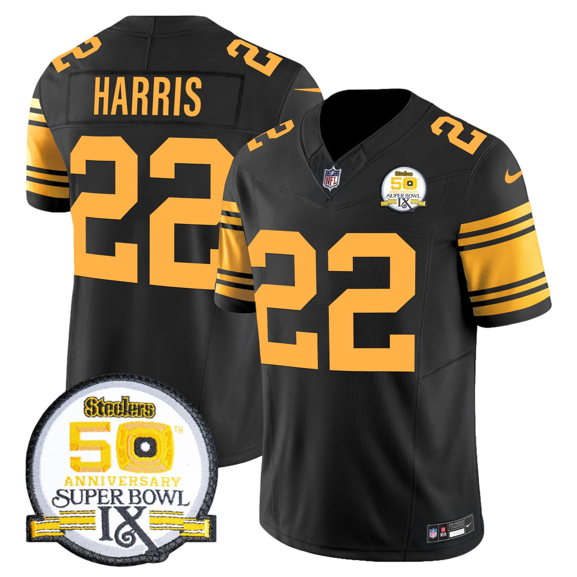 Pittsburgh Steelers 50th Anniversary of Super Bowl IX Patch Gold Vapor Limited Jersey – All Stitched 15- #22 Najee Harris