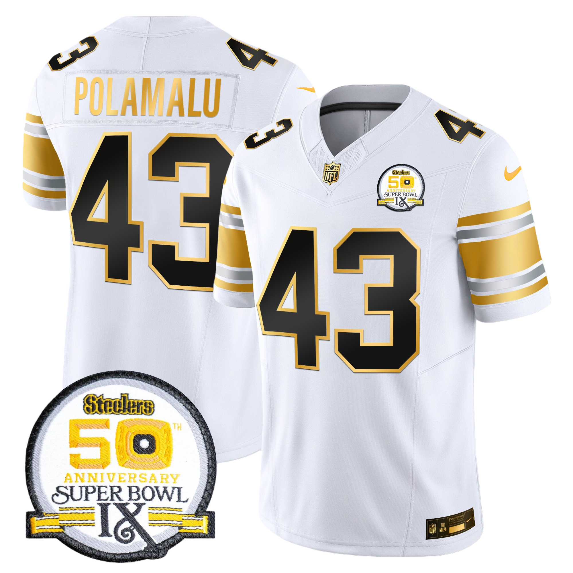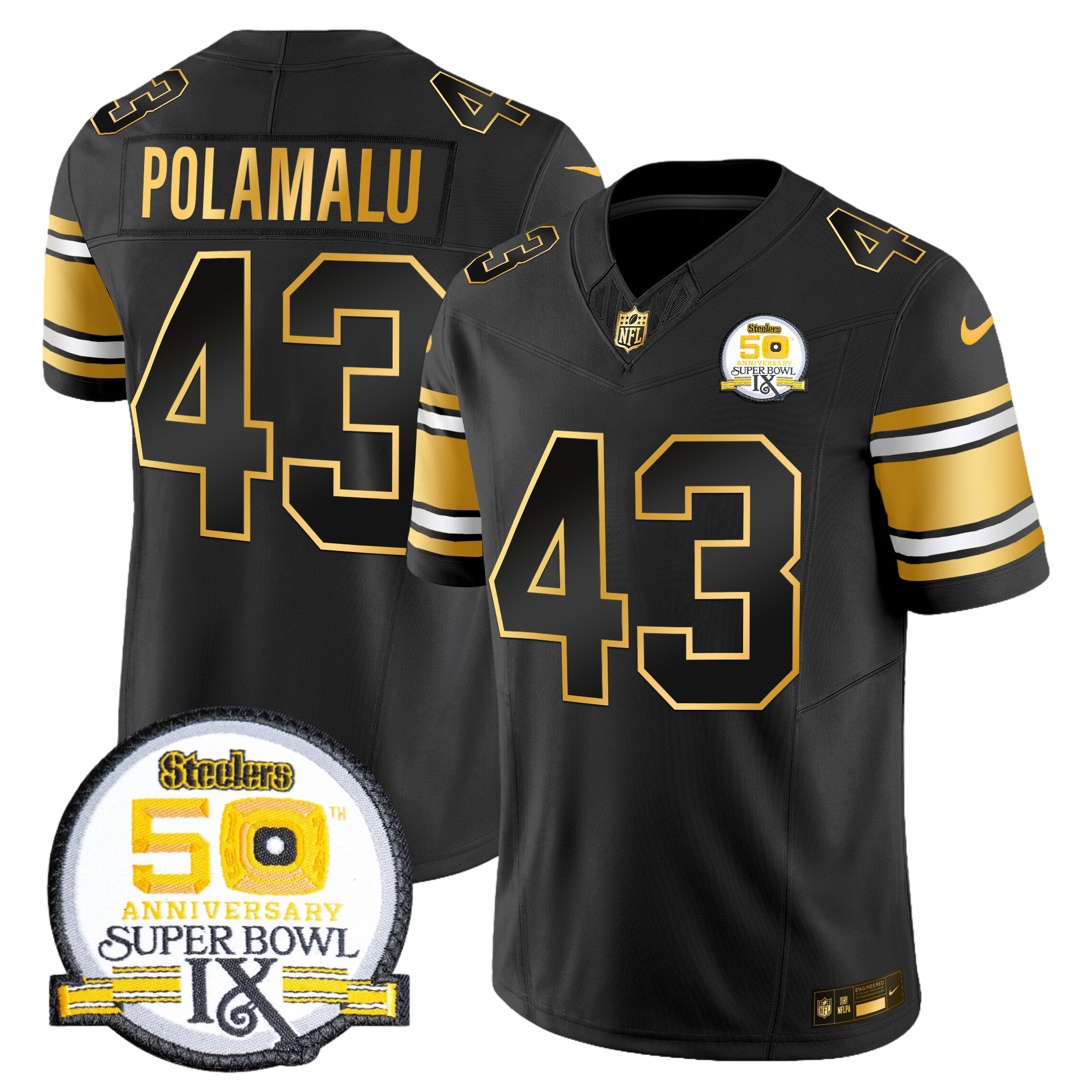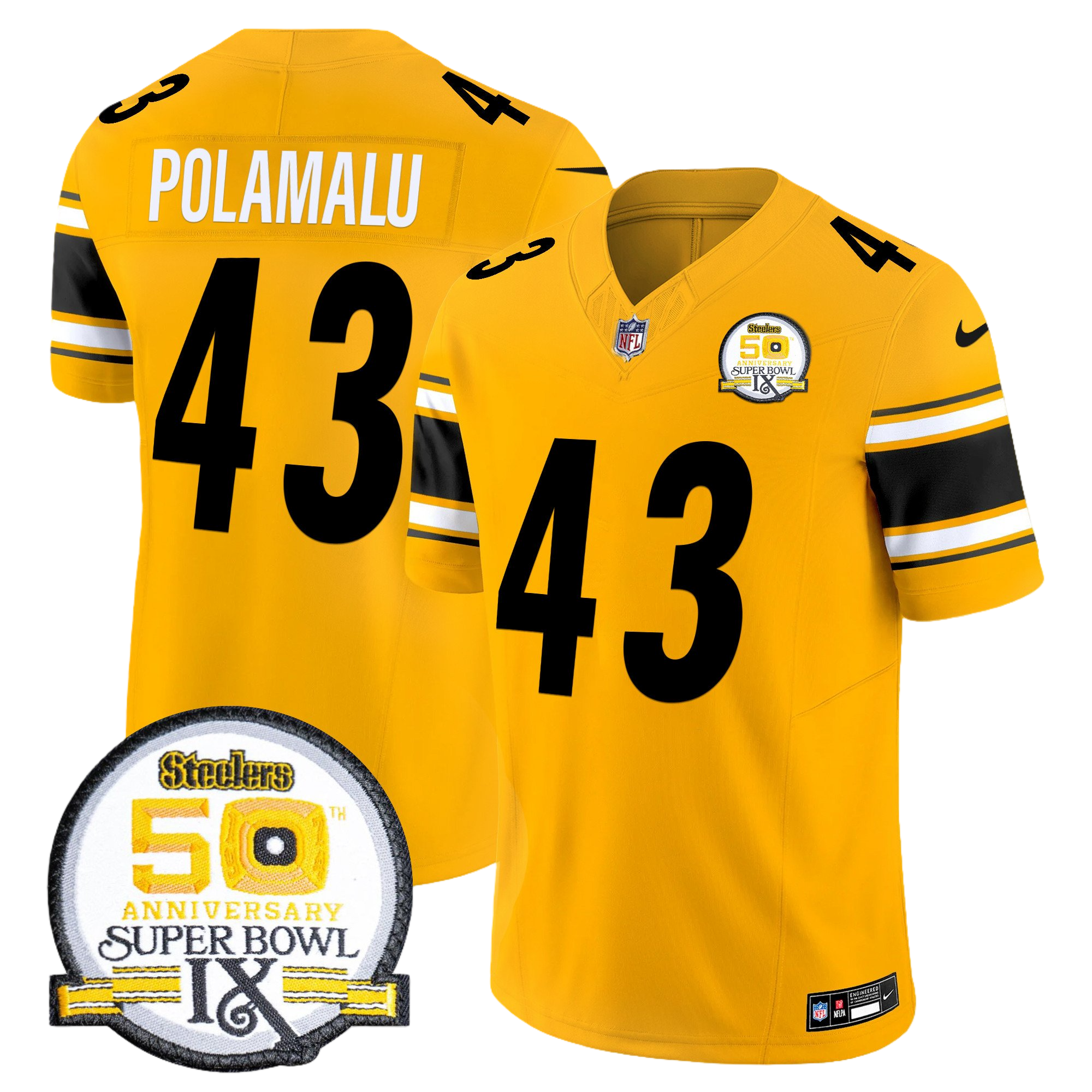Pittsburgh Steelers 50th Anniversary of Super Bowl IX Patch Gold Vapor Limited Jersey – All Stitched 23- #43 Troy Polamalu