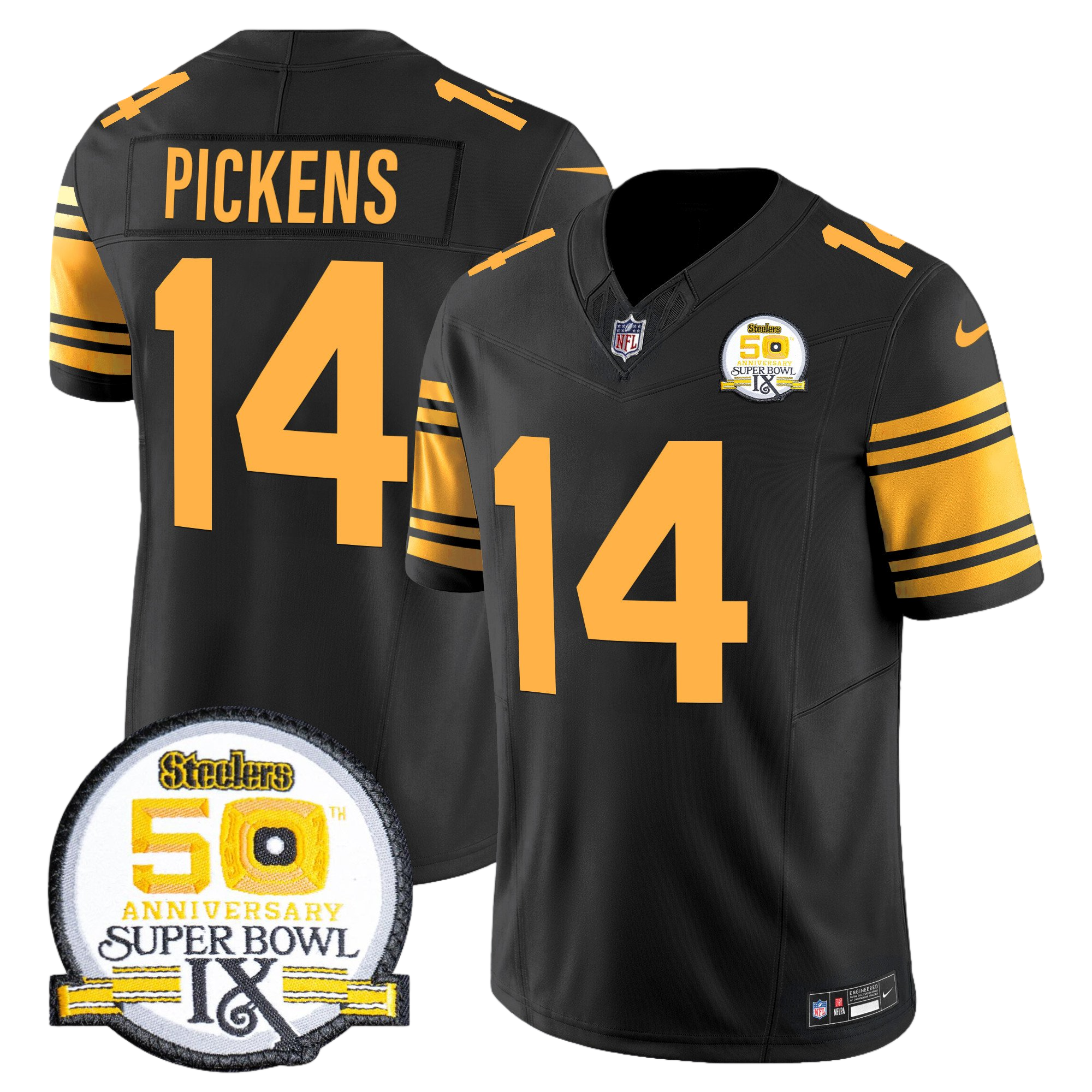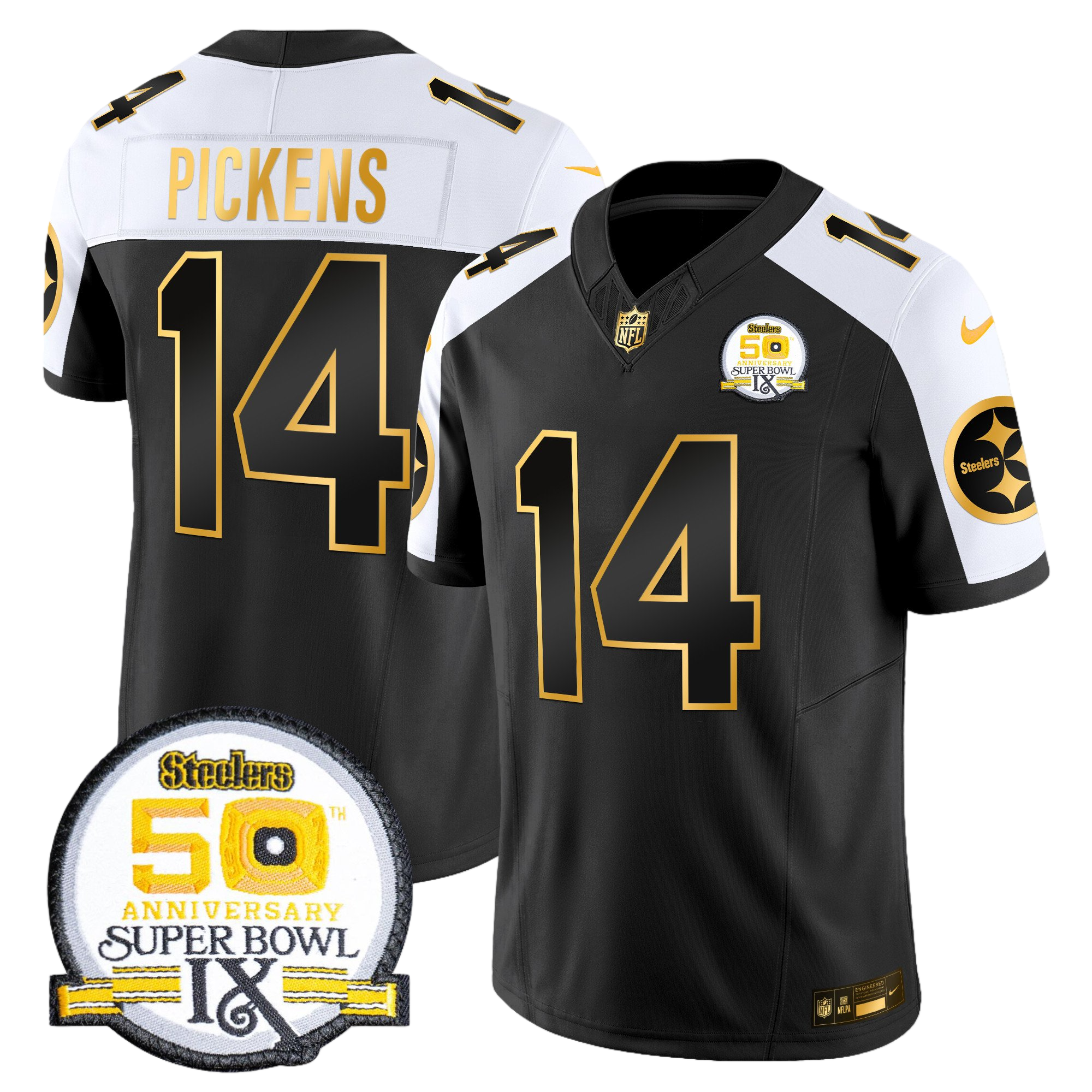 Pittsburgh Steelers 50th Anniversary of Super Bowl IX Patch Gold Vapor Limited Jersey – All Stitched 25- #14 George Pickens
