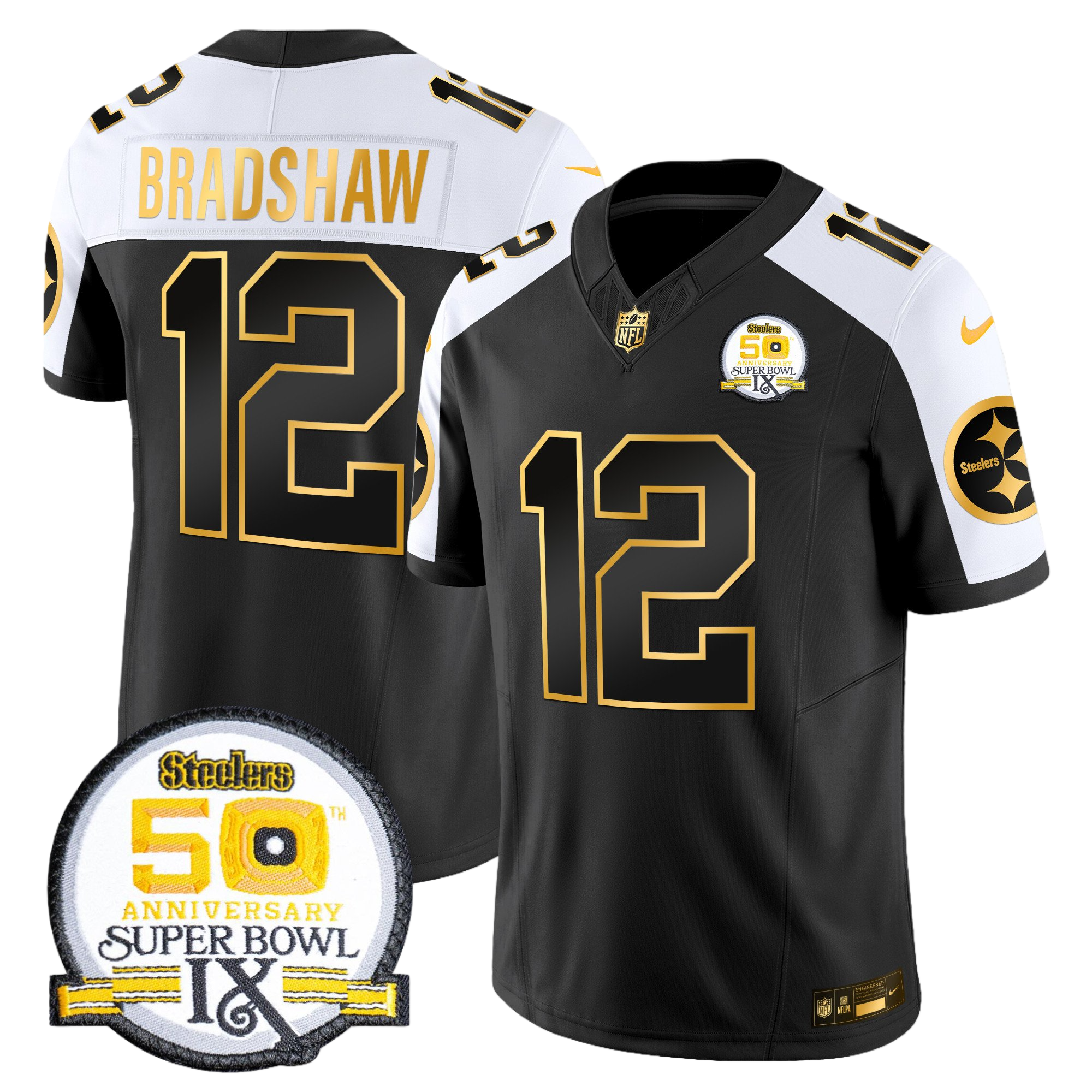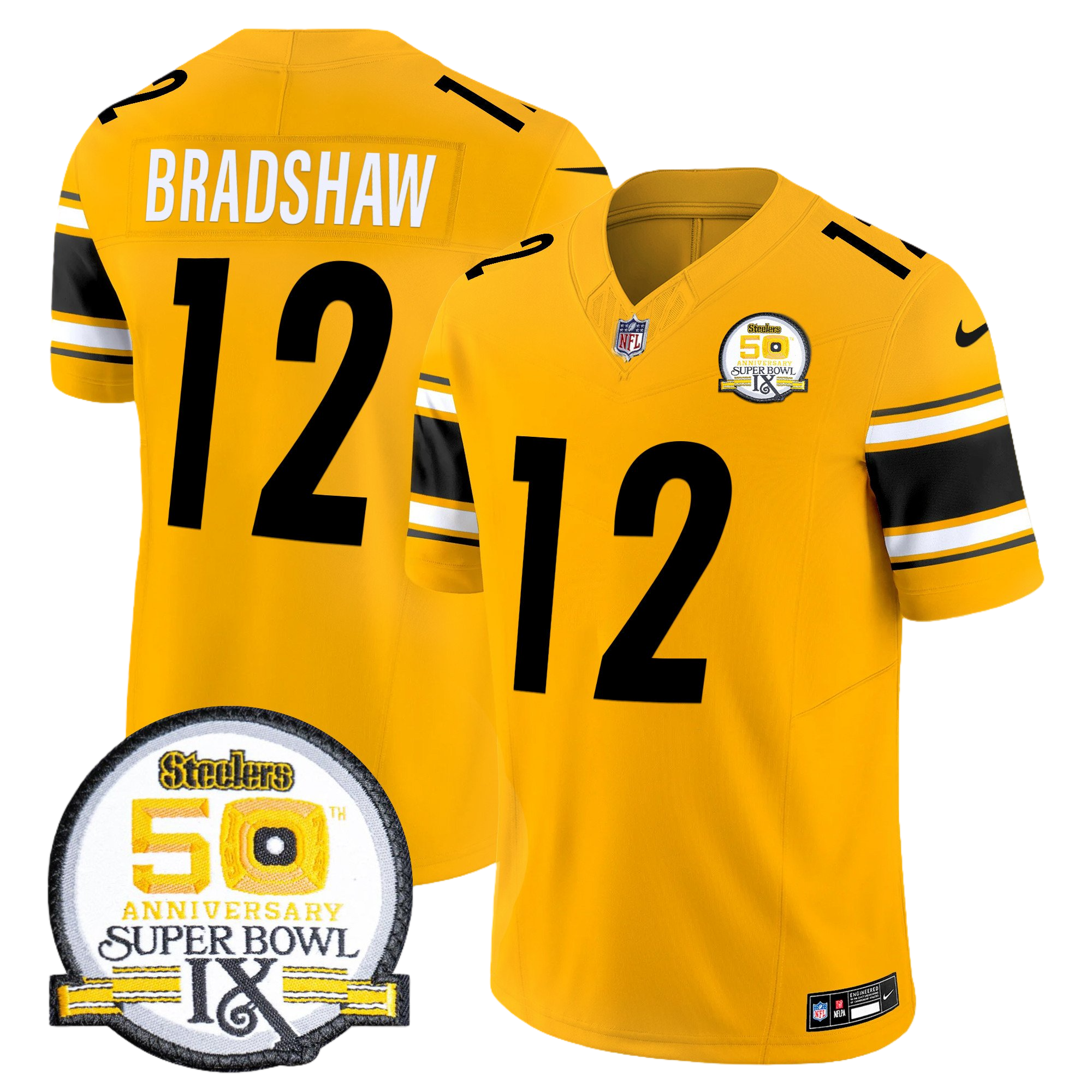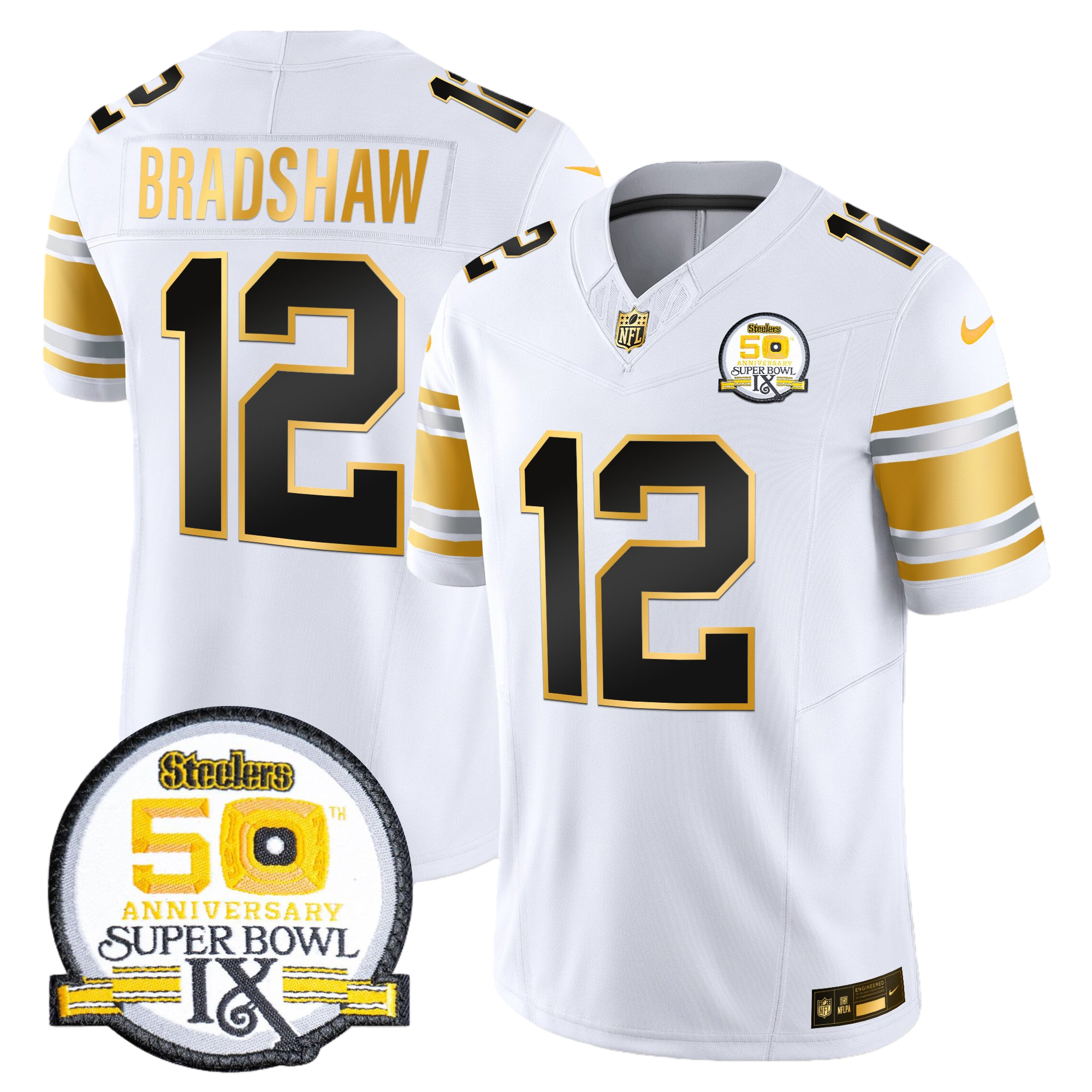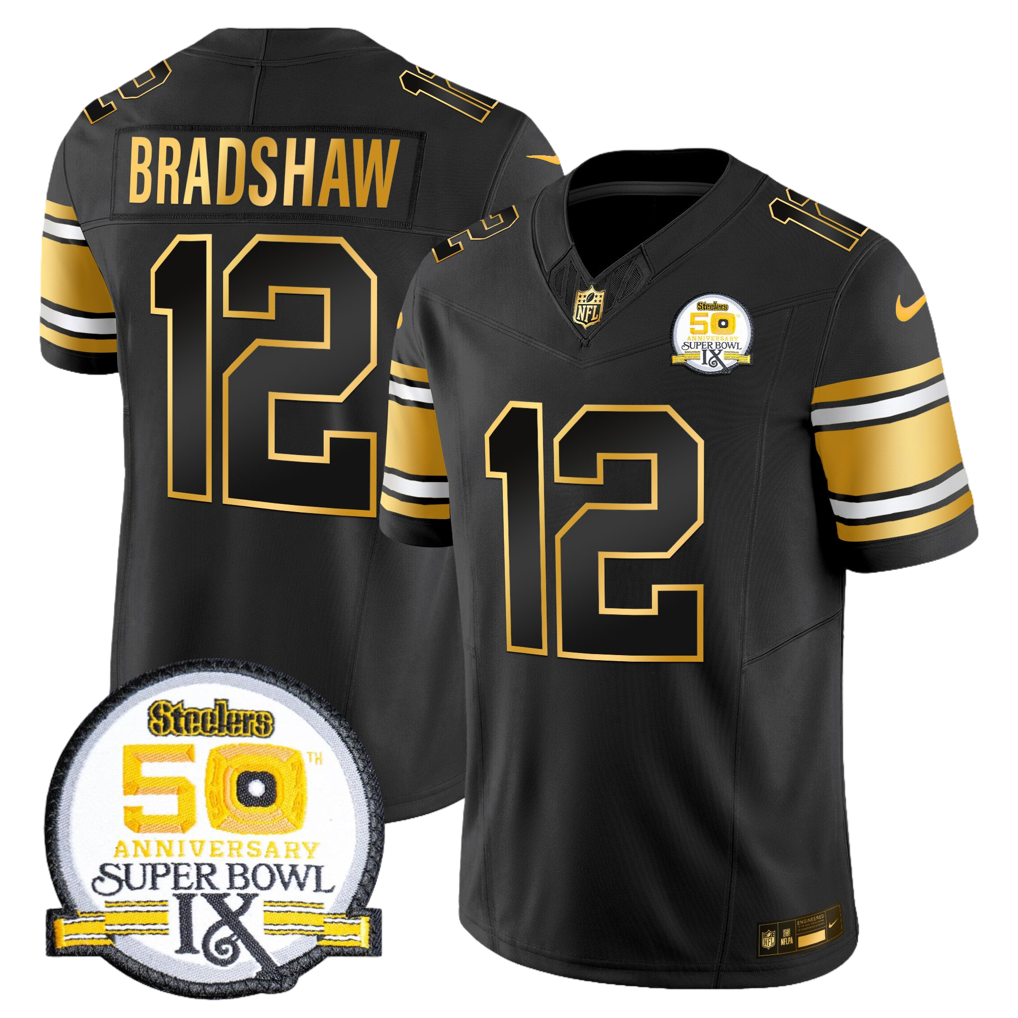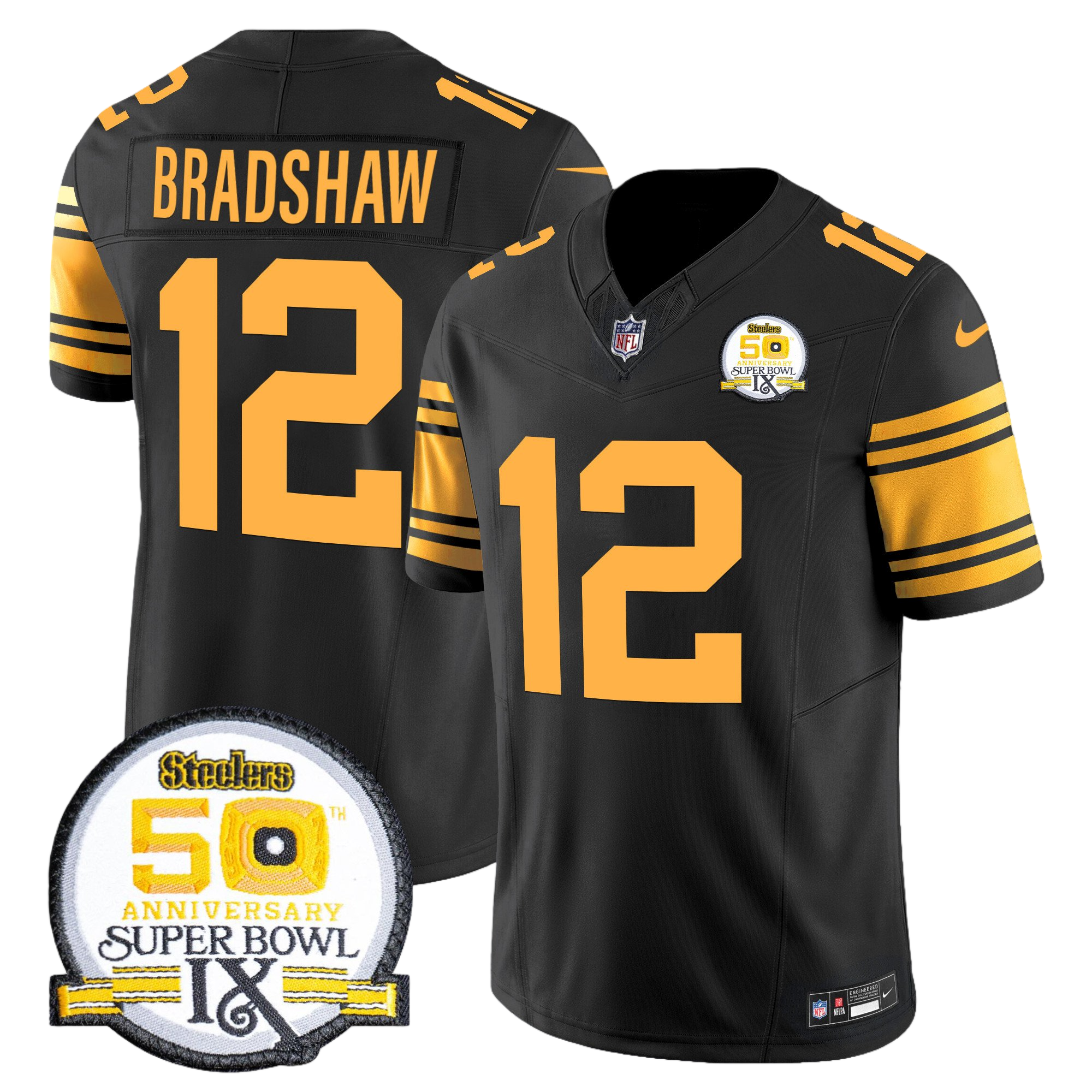Pittsburgh Steelers 50th Anniversary of Super Bowl IX Patch Gold Vapor Limited Jersey – All Stitched 31- #12 Terry Bradshaw
