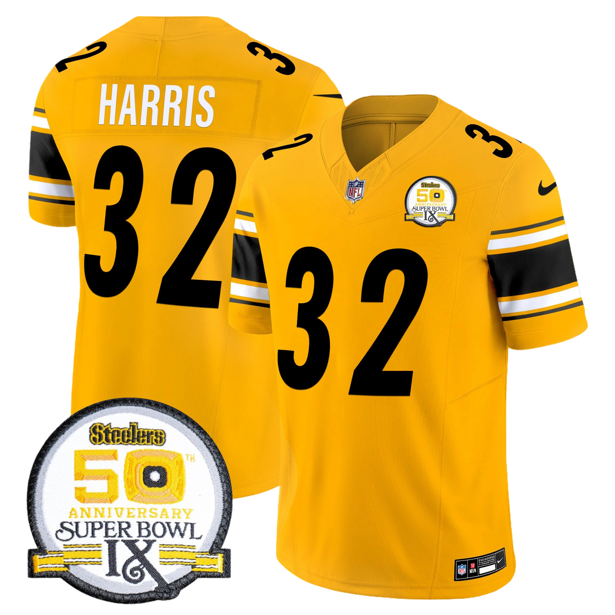 Pittsburgh Steelers 50th Anniversary of Super Bowl IX Patch Gold Vapor Limited Jersey – All Stitched 12- #32 Franco Harris